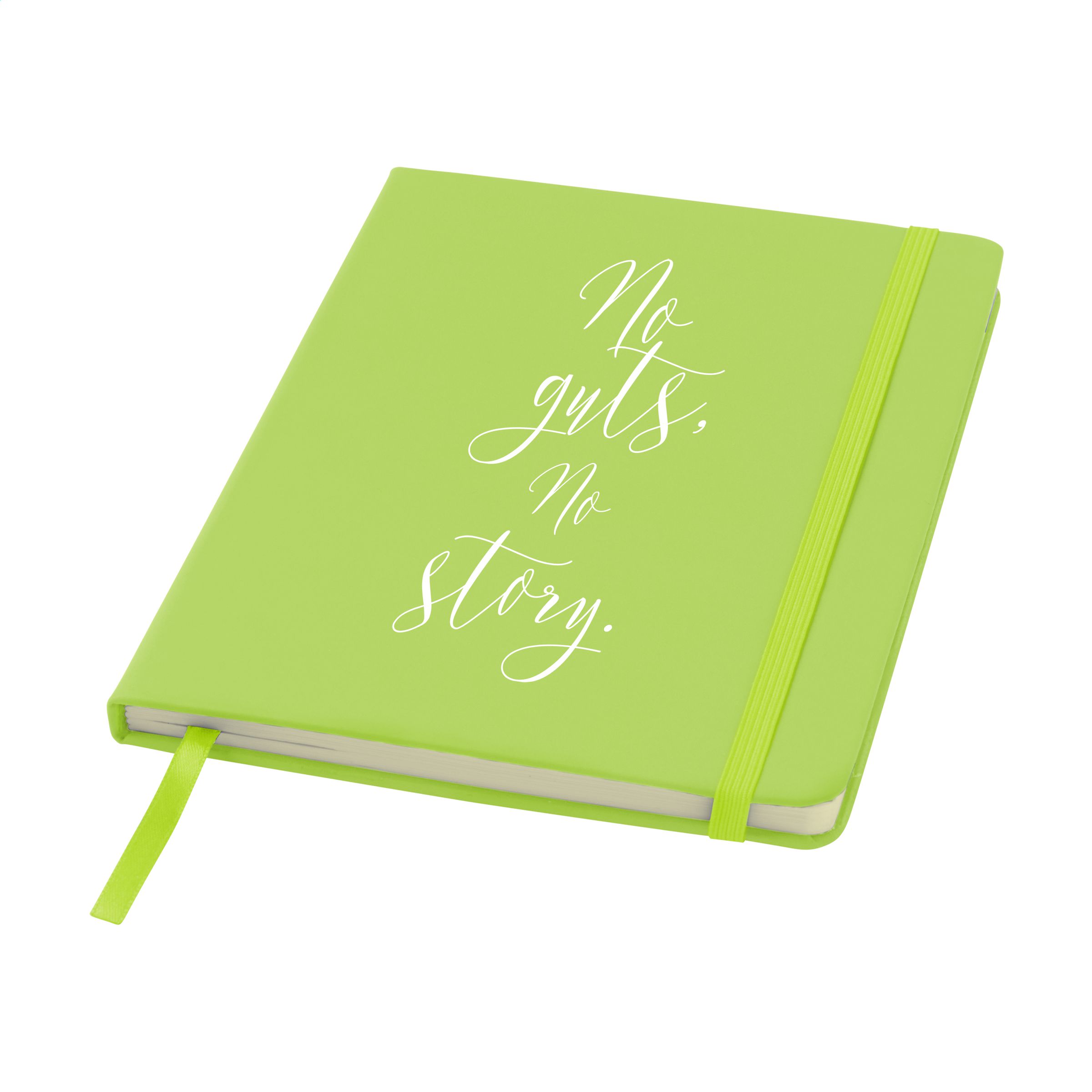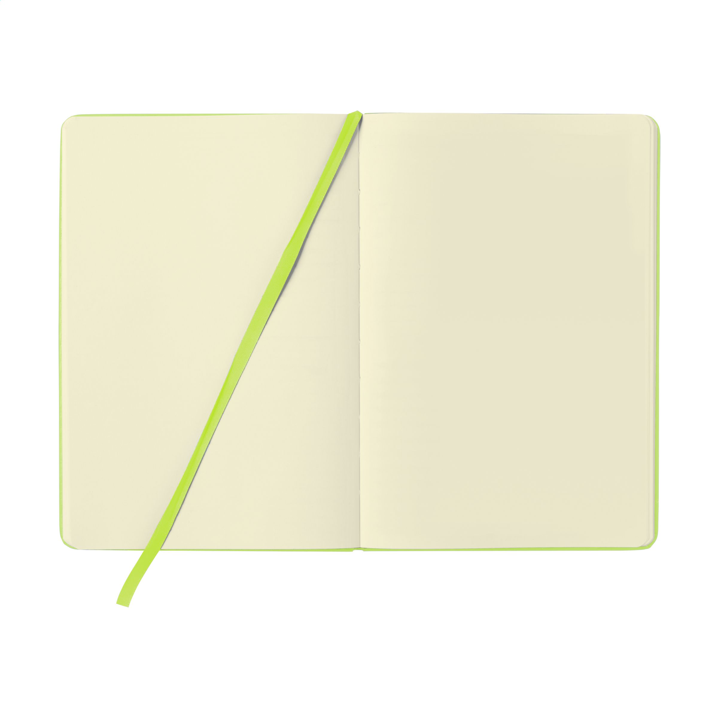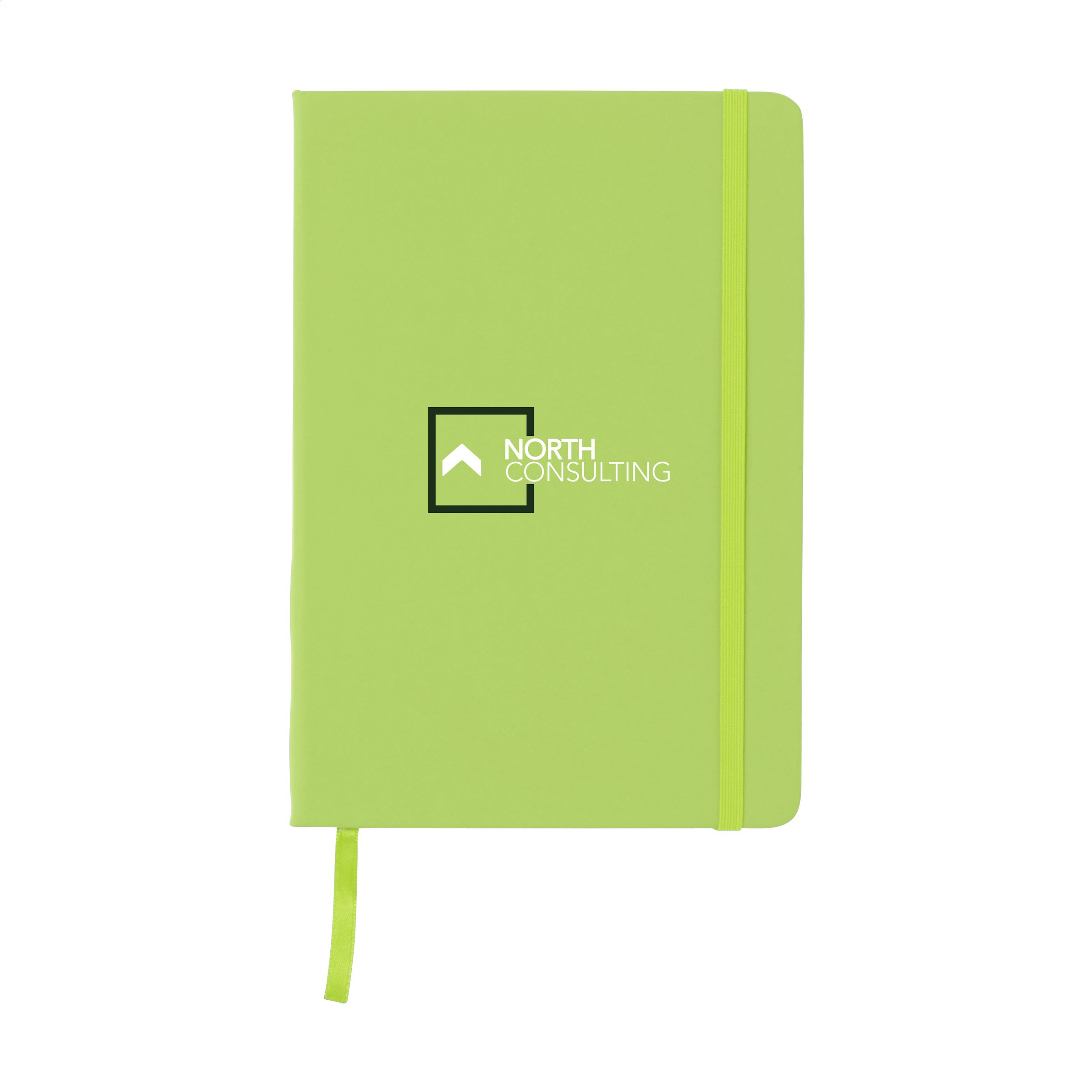 Praktisches Notizbuch im A5-Format. Mit festem PU-Überzug, ca. 80 Blankoblatt/160 Blankoseiten cremefarbenem, unliniertem FSC Mix zertifiziertes Papier (70 g / m²), elastischem Verschluss und Leseband.