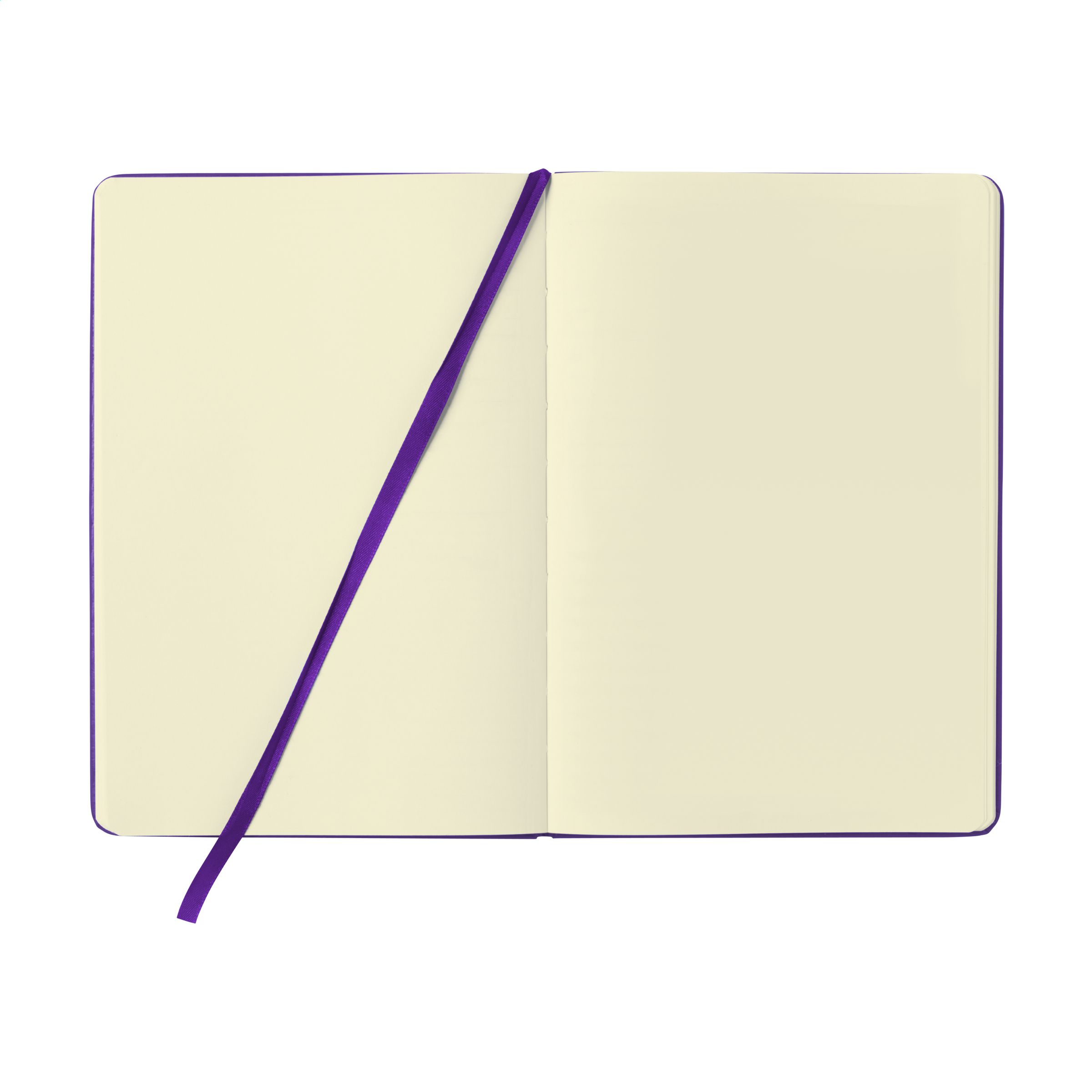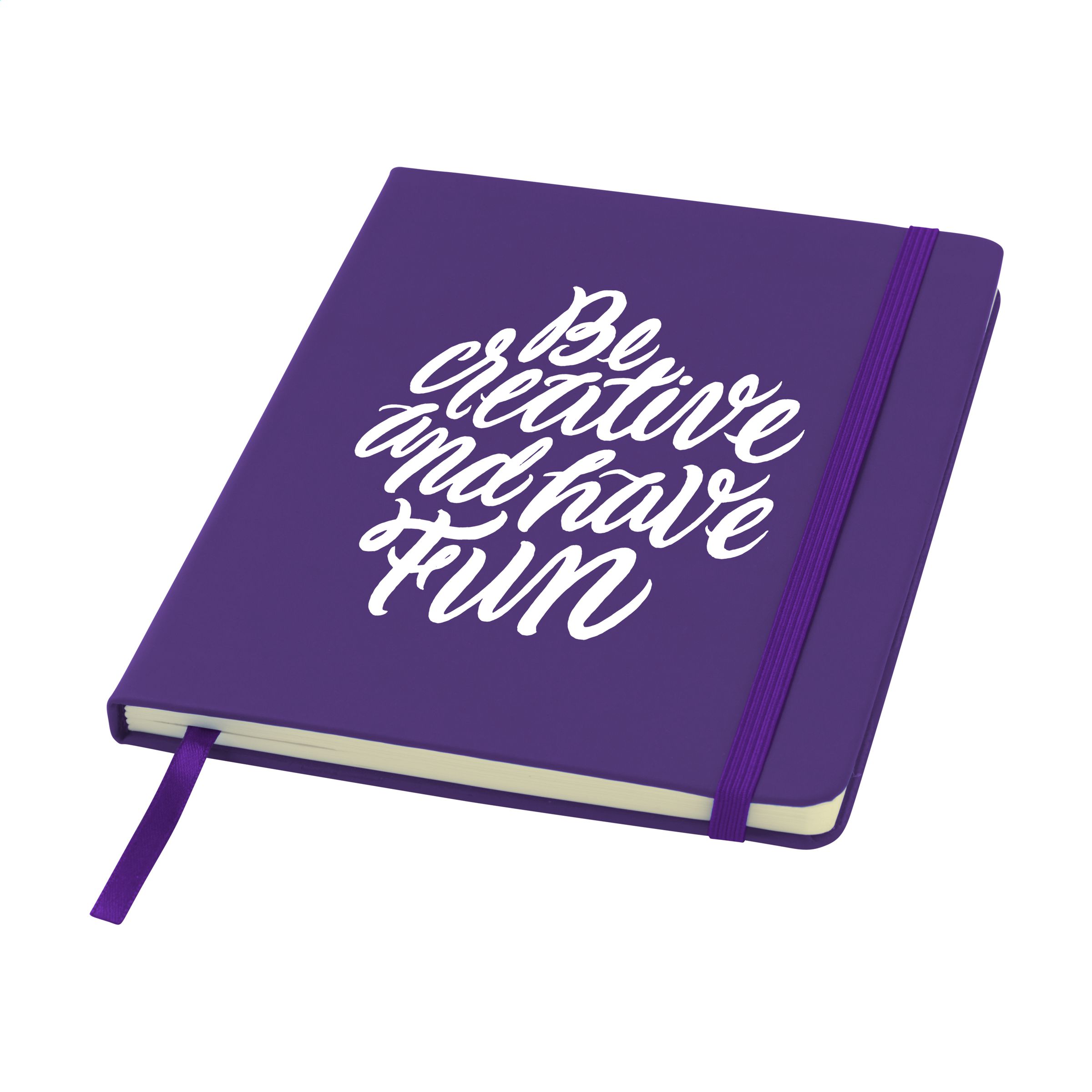Praktisches Notizbuch im A5-Format. Mit festem PU-Überzug, ca. 80 Blankoblatt/160 Blankoseiten cremefarbenem, unliniertem FSC Mix zertifiziertes Papier (70 g / m²), elastischem Verschluss und Leseband.