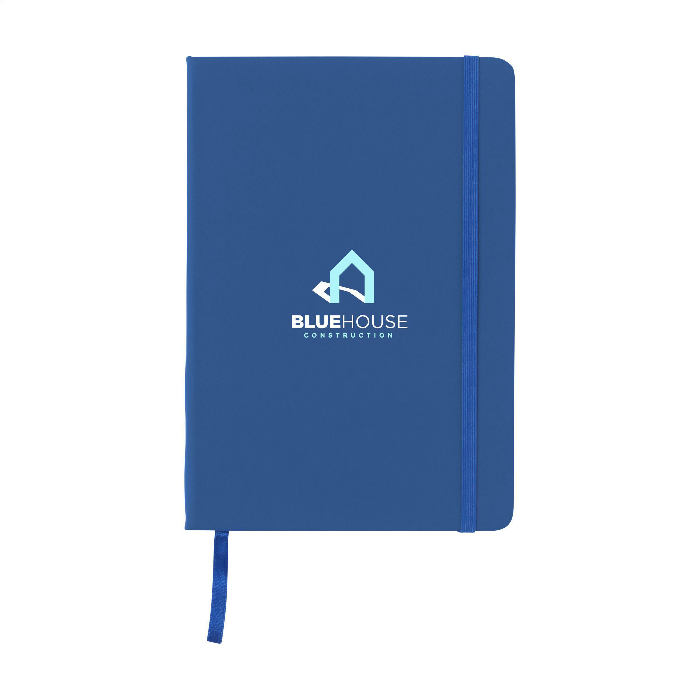Praktisches Notizbuch im A5-Format. Mit festem PU-Überzug, ca. 80 Seiten cremefarbenem, liniertem FSC Mix zertifiziertes Papier (70 g/m²), elastischem Verschluss und Leseband.