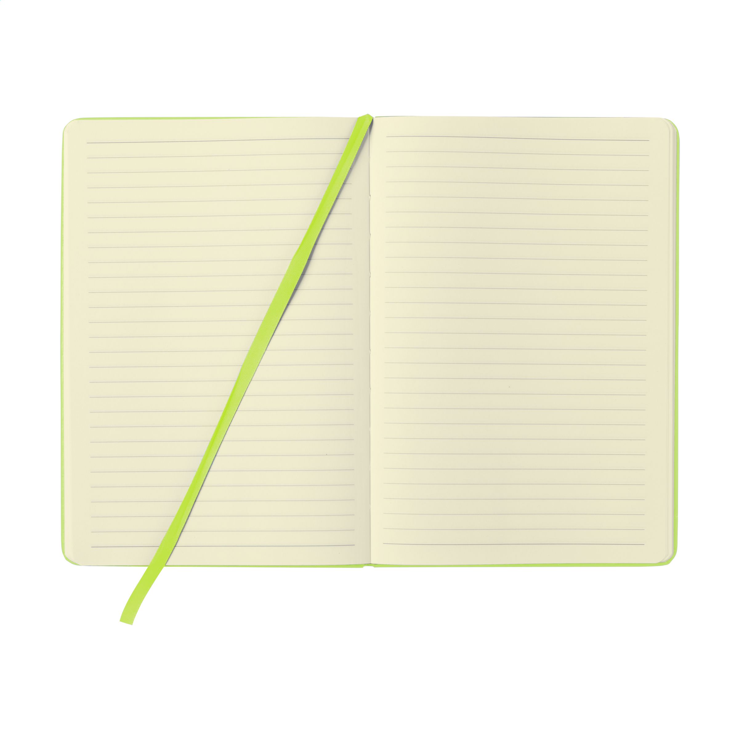 Praktisches Notizbuch im A5-Format. Mit festem PU-Überzug, ca. 80 Seiten cremefarbenem, liniertem FSC Mix zertifiziertes Papier (70 g / m²), elastischem Verschluss und Leseband.