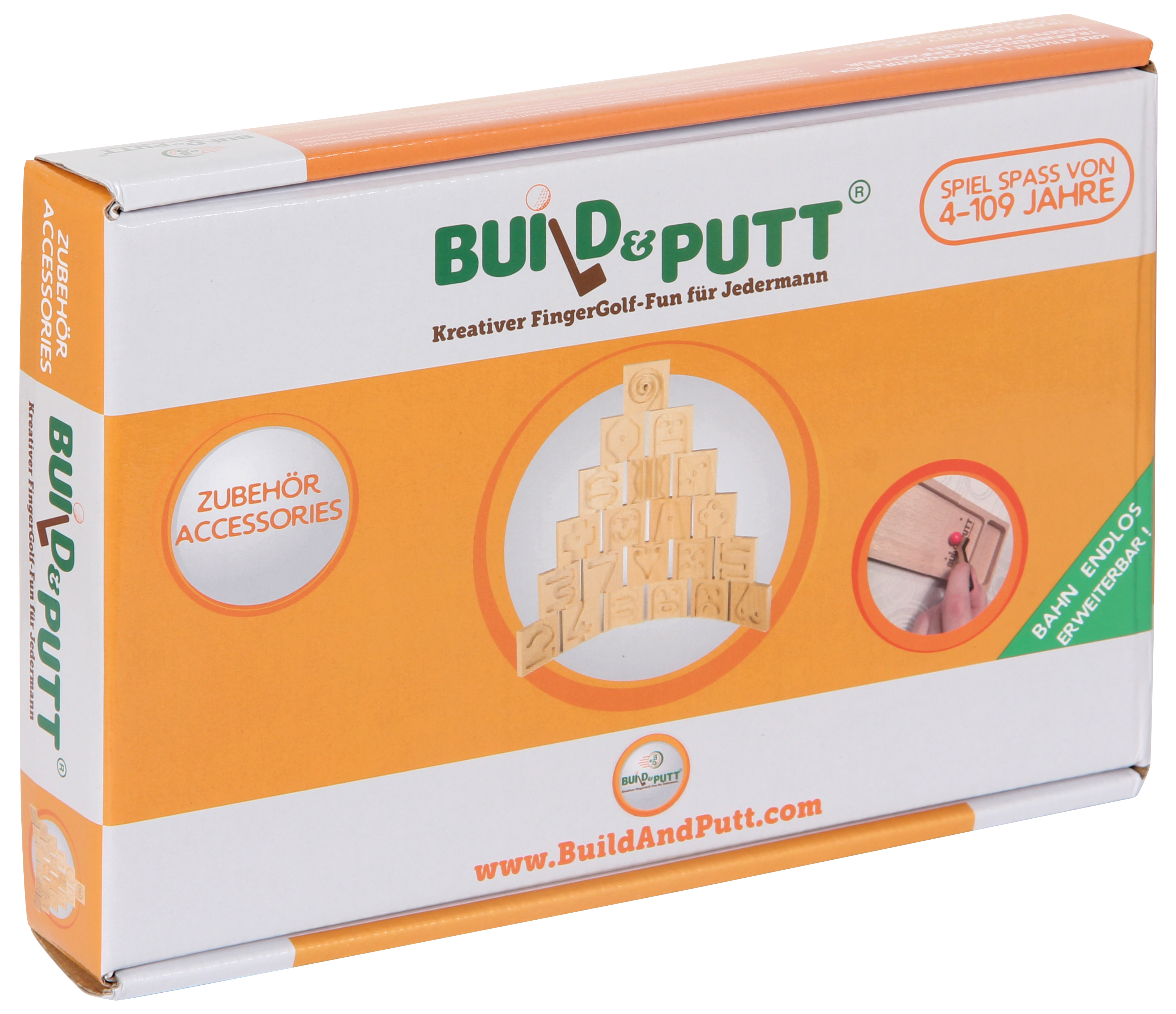 Erweiterungsset Kurven zum FingerGolf-Spiel. Minigolf begeistert seit Generationen Groß und Klein. Build & Putt bringt den Freizeitspaß an den Familientisch! Als ein pädagogisch sinnvolles Geschicklichkeitsspiel aus wieder verwertbaren Materialien, dei dem Kreativität, Konzentration und Feinmotorik alleine oder im Team gemeinsam gefördert werden. Unterschiedliche Spielstärken können einfach ausgeglichen werden. 8-teiliges Erweiterungsset. Made in Austria.