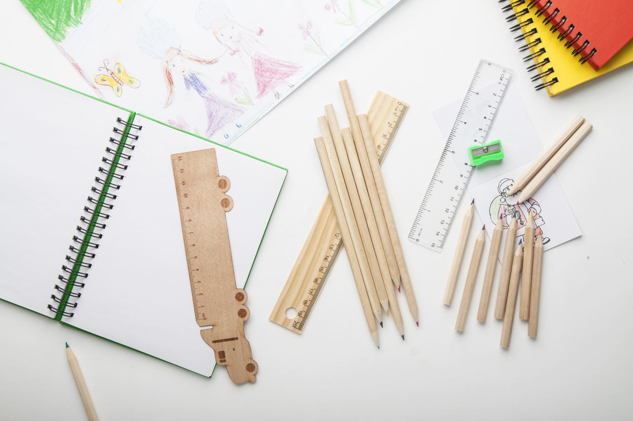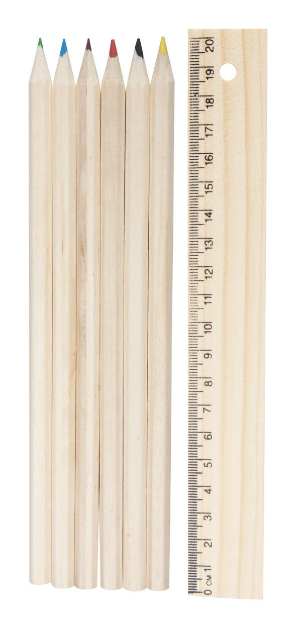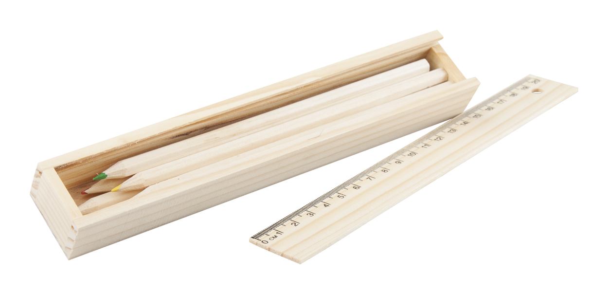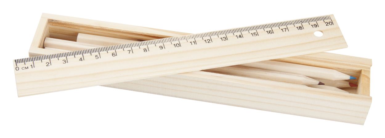 6 Buntstifte in Holzbox mit Lineal (20cm).