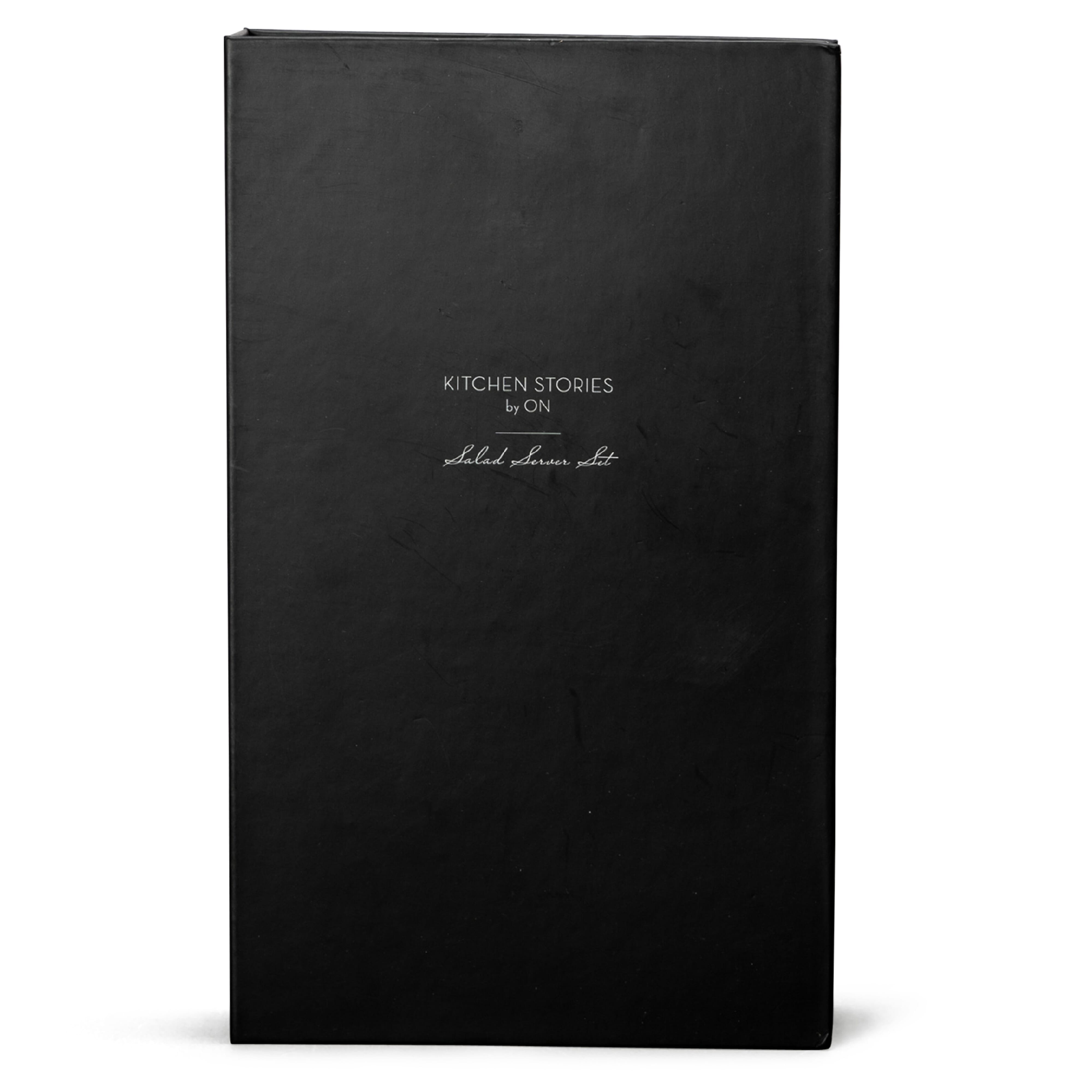 Stilvolles Salatbesteck aus rostfreiem Stahl. Das Set wird in einer schönen dekorativen Geschenkbox in Form eines Buches mit dem Titel "Kitchen Stories" geliefert. Stilvoll in jeder Küche und auf jedem Regal.
