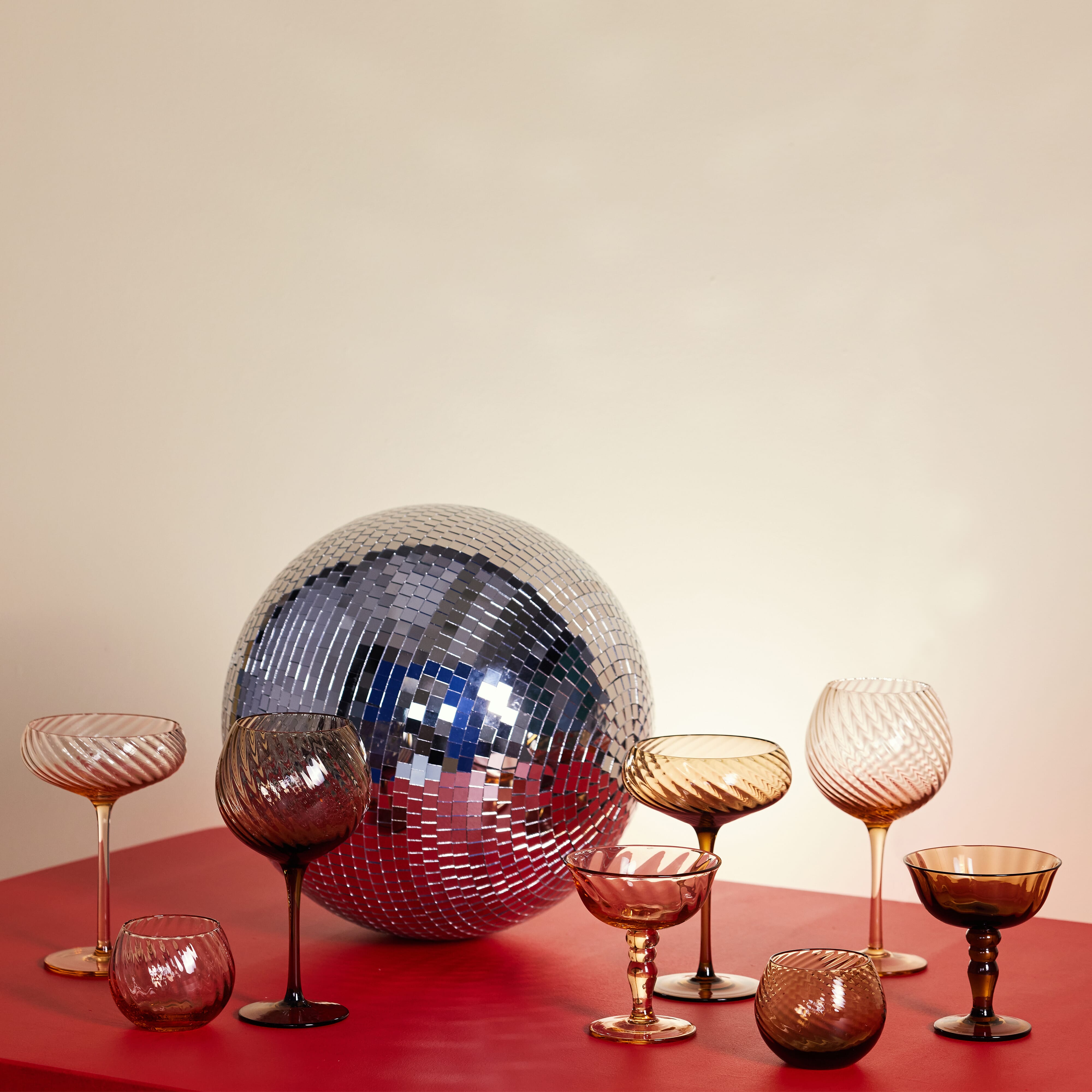 Die beiden Opacity Weingläser sind aus klarem Glas gefertigt und haben ein schönes Schleuderglasmuster. Sie sind dünne und klare Weingläser mit einem perfekten Kontrast zwischen Luxus und Skurrilität. Entwurf von Studio Byon. Wird in einem Geschenkkarton geliefert.