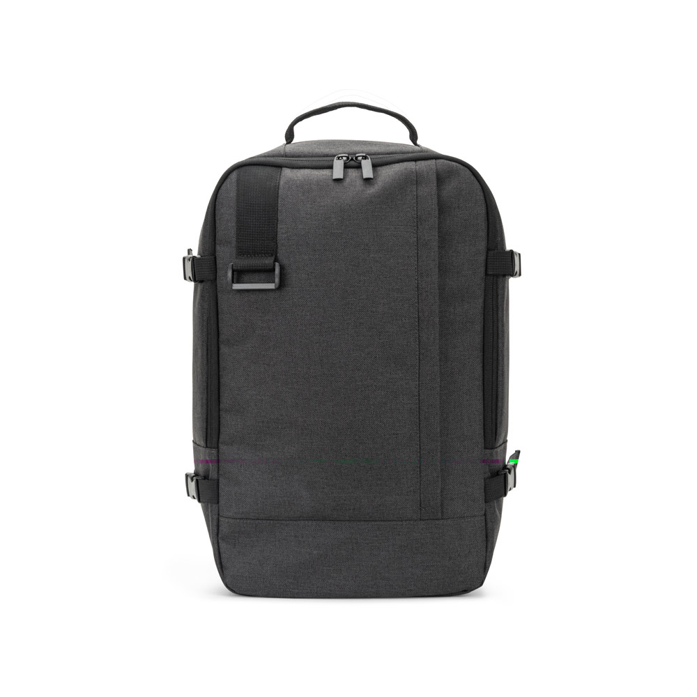 Dieser Rucksack wurde so konzipiert, dass er den von den Fluggesellschaften geforderten Massen entspricht, so dass Sie alles, was Sie brauchen, als Handgepäck mitnehmen können. Er besteht aus recyceltem, hochdichtem 600D-Polyester mit wasserabweisend Beschichtung und einem Innenfutter aus recyceltem 210D Polyester. Er verfügt über ein großes Hauptfach für Kleidung, ein vollständig gepolstertes Fach für einen Laptop bis zu 14" und ein Vordertasche. Der Rucksack bietet Ihnen dank seines gepolsterten oberen Griffs, seiner Kompressionsriemen an den Seiten, mit denen Sie die Grösse des Rucksacks an Ihr Volumen anpassen können, und des Netzrückens mit Trolleyband mehr Komfort auf Reisen. An der Vorderseite befindet sich ein Teil zum Aufhängen von Gegenständen, z. B. einer Flasche, mit einem Karabinerhaken. Fassungsvermögen bis zu 20 Liter. 250 x 400 x 200 mm