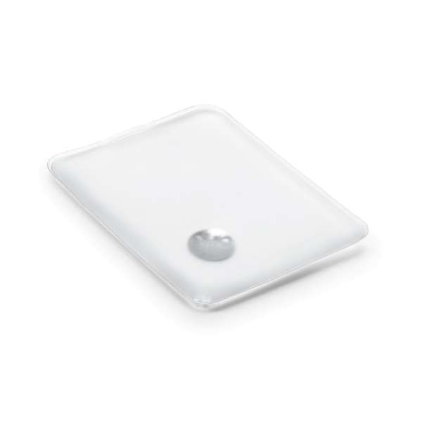 Wärmekissen aus PVC, dieser erzeugt Wärme beim Drücken des Metallplättchens. Dieser Artikel ist ein Werbeartikel. 88 x 110 mm