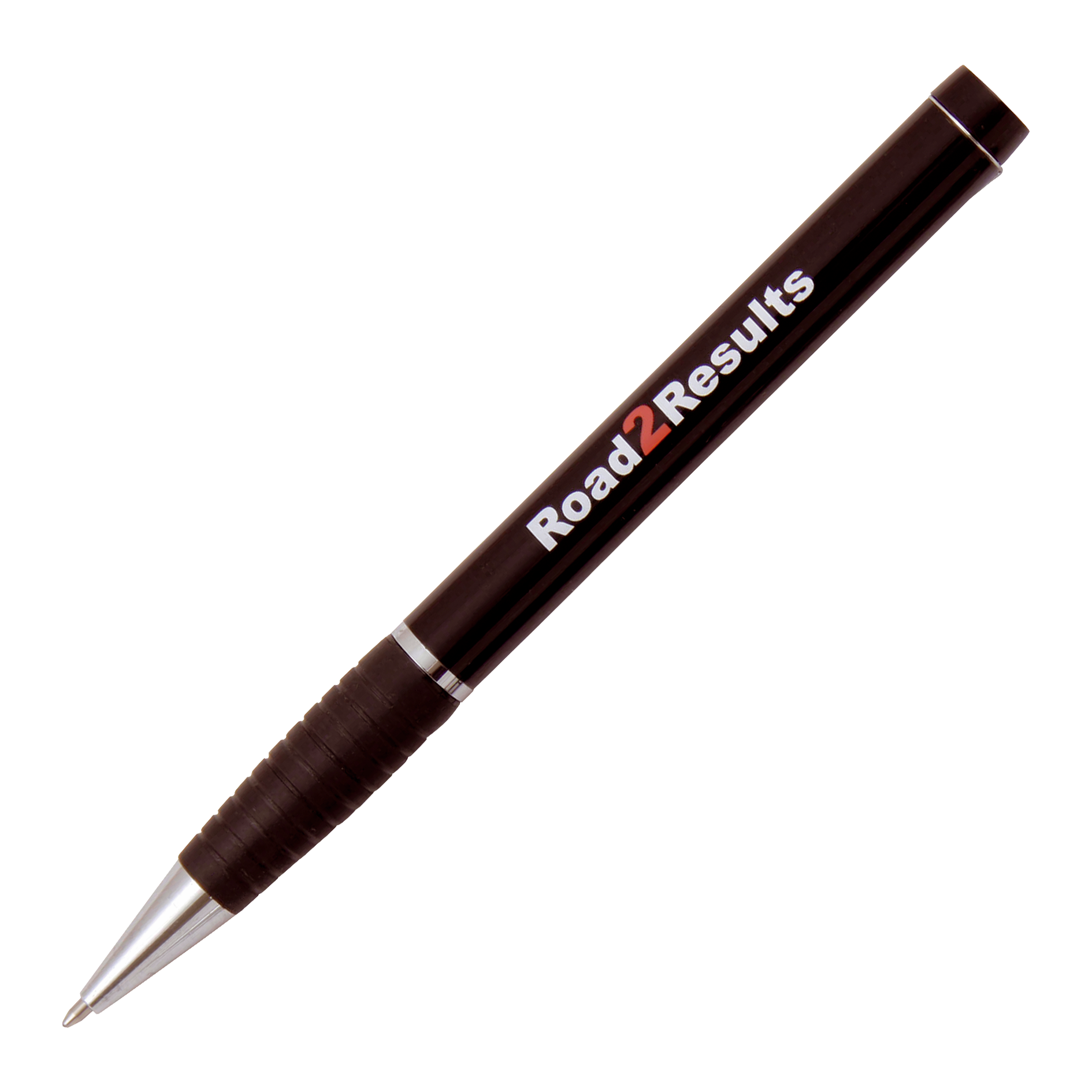 CORSE Twistgrip Kugelschreiber Peekay, Design Metallkugelschreiber mit ergonomischer Gummigriffzone, markant verchromten Clip, Ring und Spitze und mit blauschreibender Metallmine