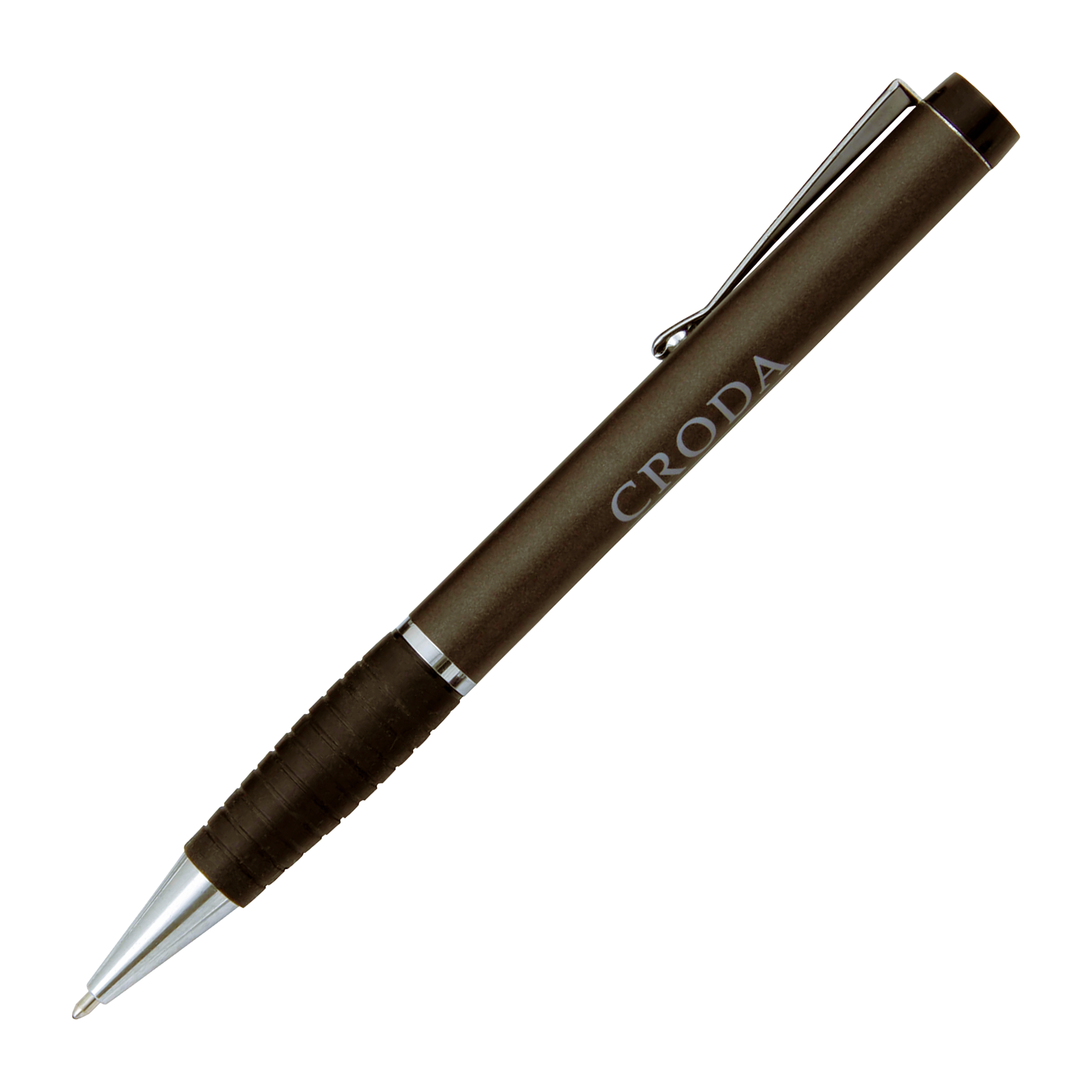 CORSE Twistgrip Kugelschreiber Peekay, Design Metallkugelschreiber mit ergonomischer Gummigriffzone, markant verchromten Clip, Ring und Spitze und mit blauschreibender Metallmine