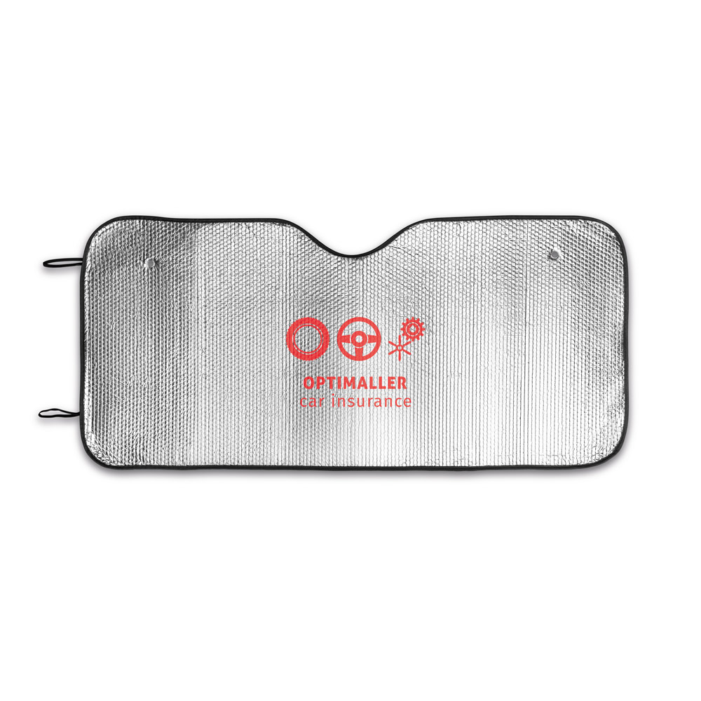 Sonnenschutzblende aus PE-Blase und mit Folie auf der Vorder- und Rückseite. Geeignet für die Frontscheibe und mit 2 Saugnapfbefestigungen. Zusammenklappbar für einfache Lagerung. 1300 x 600 mm