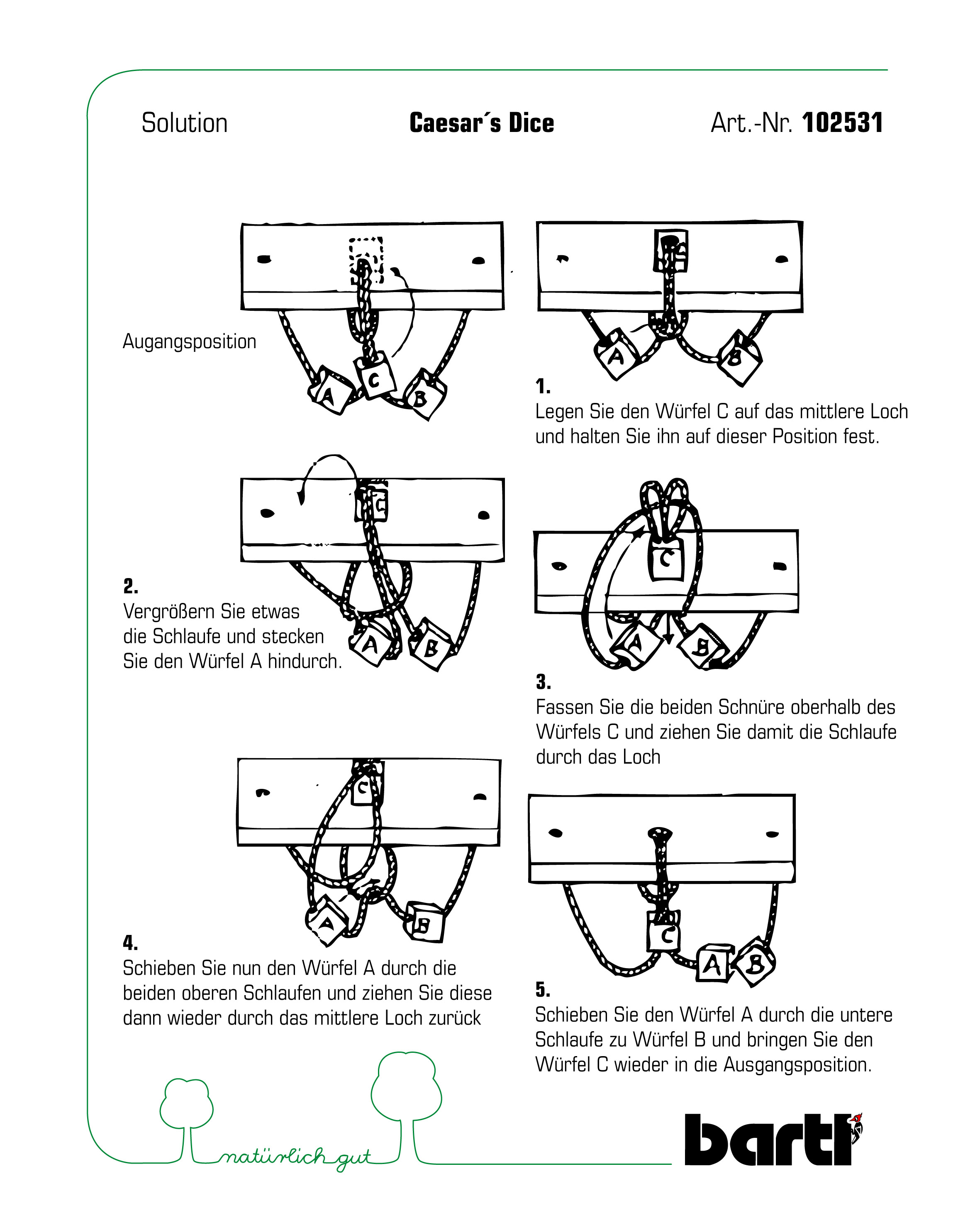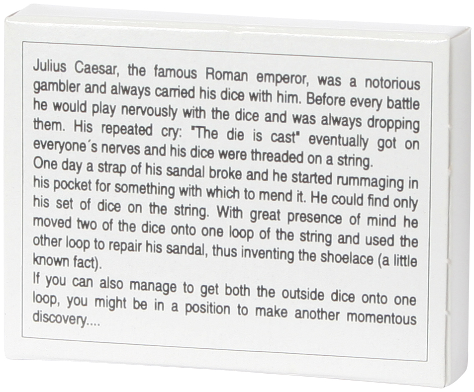 Cäsar liebte Würfelspiele. Damit er seine drei Würfel nicht verlor, band man sie ihm an eine Schnur. Entwirren Sie die Würfelschnur.