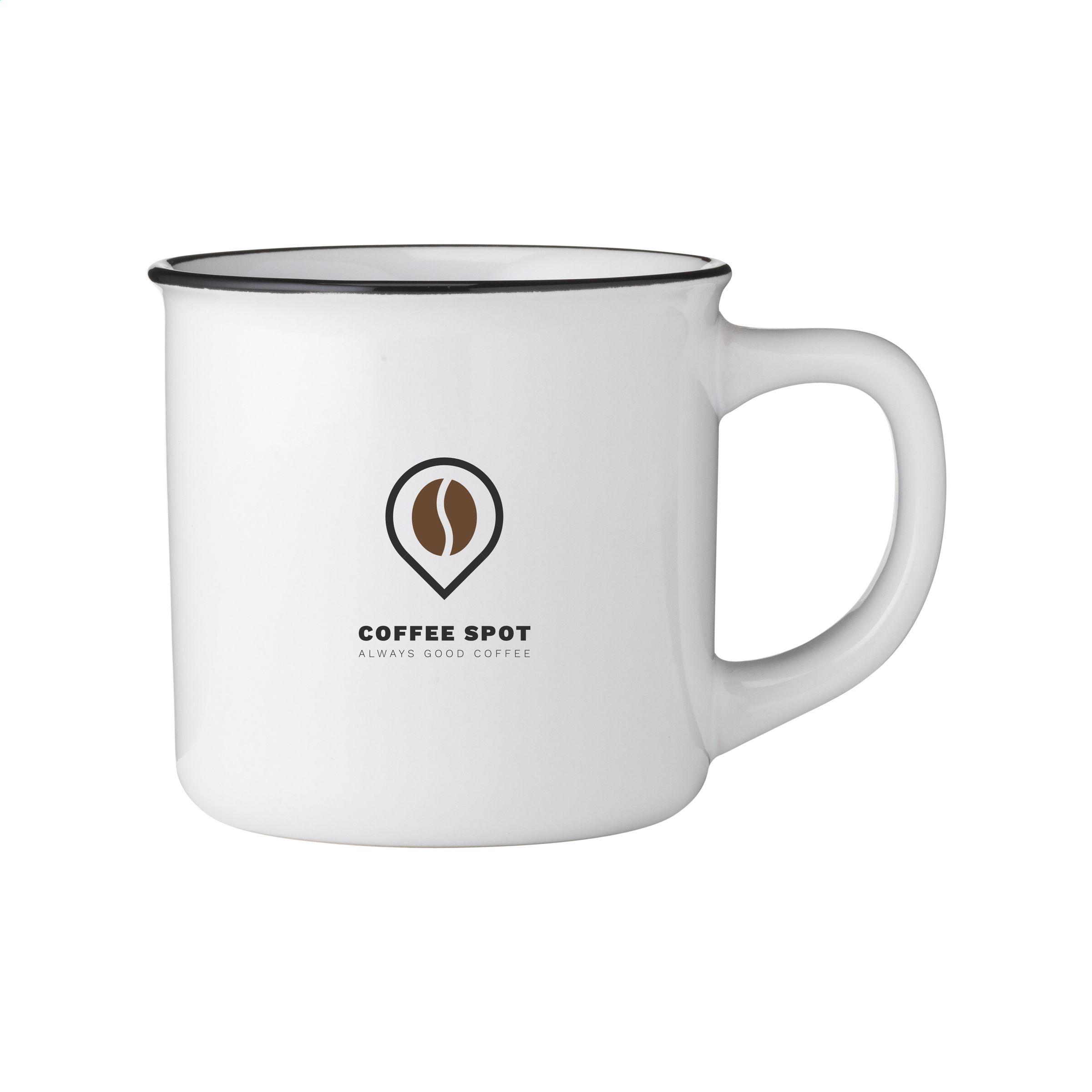 Hochwertiger Keramikbecher im beliebten Retrostil. Fassungsvermögen 320 ml. Spülmaschinenfest. Der Druck ist spülmaschinengeprüft und zertifiziert: EN 12875-2.