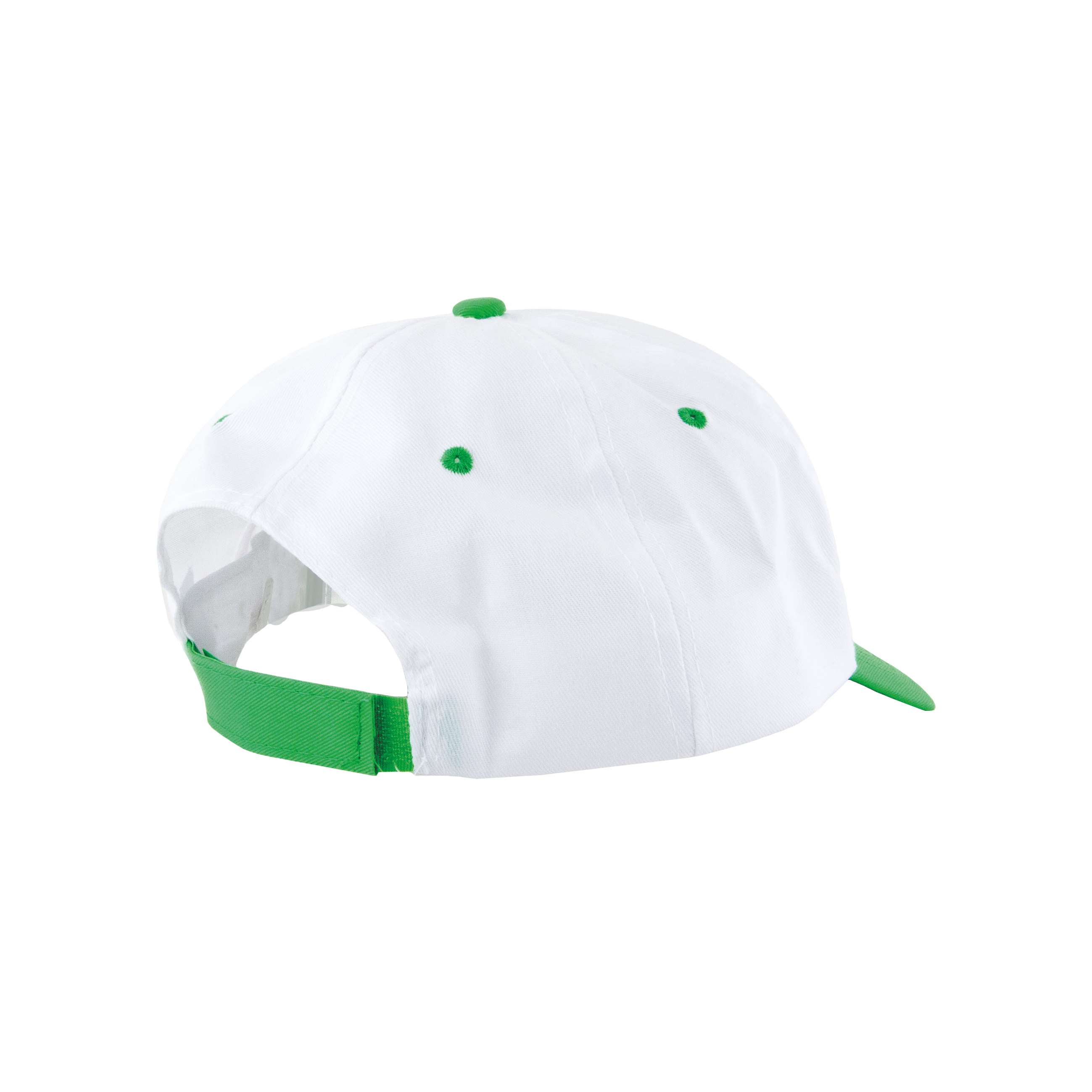 Cap 5 Panel weiß mit farbigem Schirm und Klettverschluss. Baumwollcap