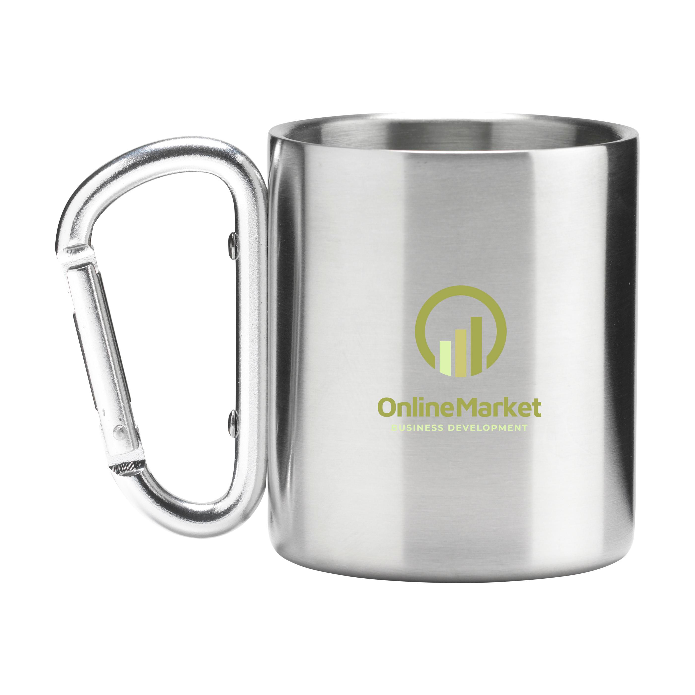 Doppelwandiger Becher aus recyceltem Edelstahl mit einem auffälligen Henkel in Form eines Karabinerhakens. Dank dieses cleveren Details lässt sich der Becher ganz einfach an fast jedem Rucksack befestigen. Ideal für Wanderungen, Camping und Reisen. Durch die Doppelwand bleiben Getränke etwas länger warm als in einem normalen Becher. RCS-zertifiziert. Gesamtes recyceltes Material: 78%. Fassungsvermögen 220 ml. Edelstahl kann viele Male recycelt werden – die Qualität des Materials bleibt dabei weitgehend erhalten. Durch die Verwendung von recyceltem Edelstahl kommt eine geringere Menge an neuen Rohstoffen zum Einsatz. Das bedeutet weniger Energieverbrauch und weniger Wasserverbrauch.