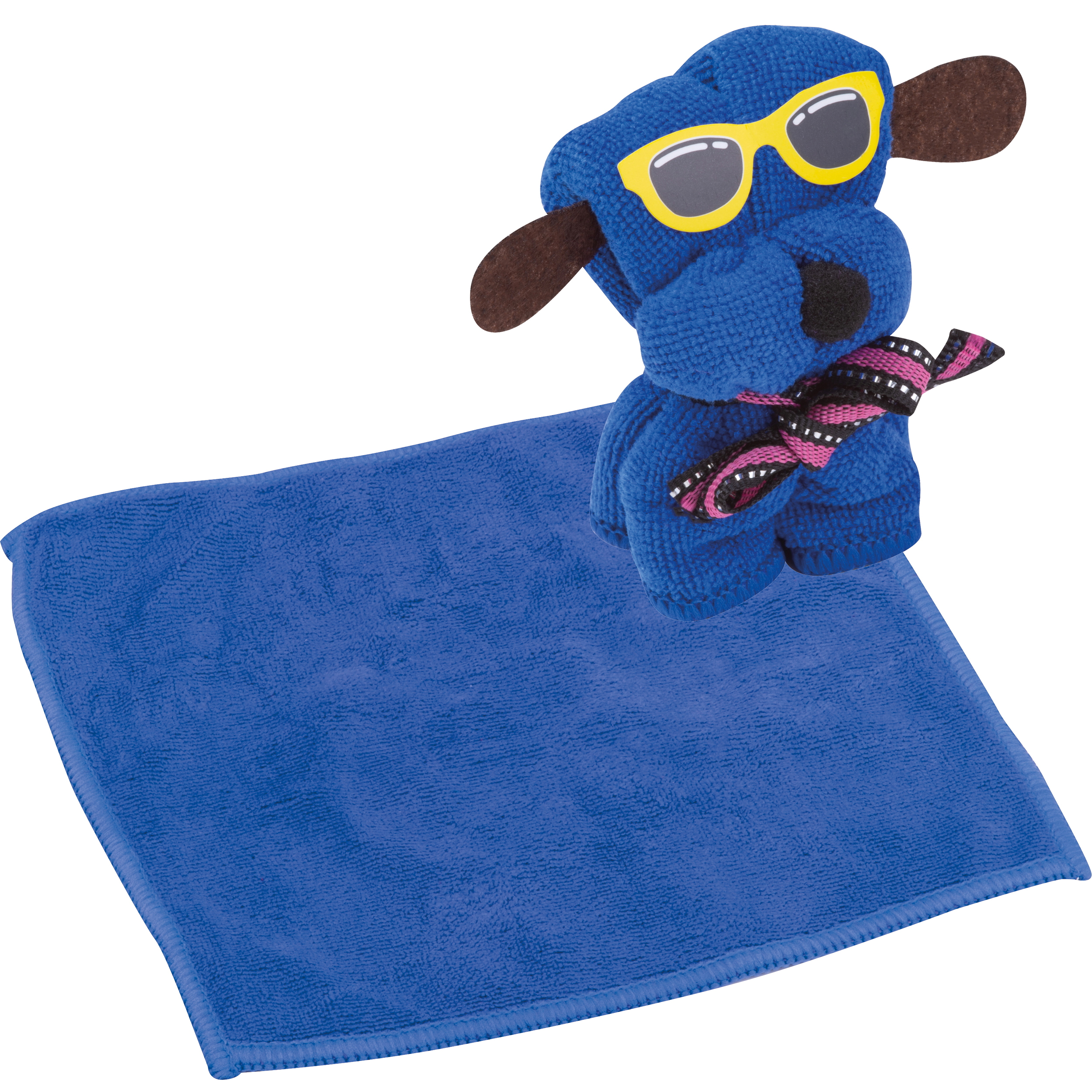 Weiches Mikrofasertuch (20 x 20 cm) in Form eines Hundes gefaltet und verpackt. Ihr Logo drucken wir auf ein Etikett und bringes es auf der Verpackung an.
