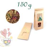 Zutaten: Grüner Tee (21%), Zimtzucker (20%) (Zucker, Karamellzucker, Glukosesirup, Zimt), Zimtstücke (20%), Rosa Pfeffer, Fenchel, Aprikosenstücke (6%), Gewürznelken, Ingwer, Aroma.