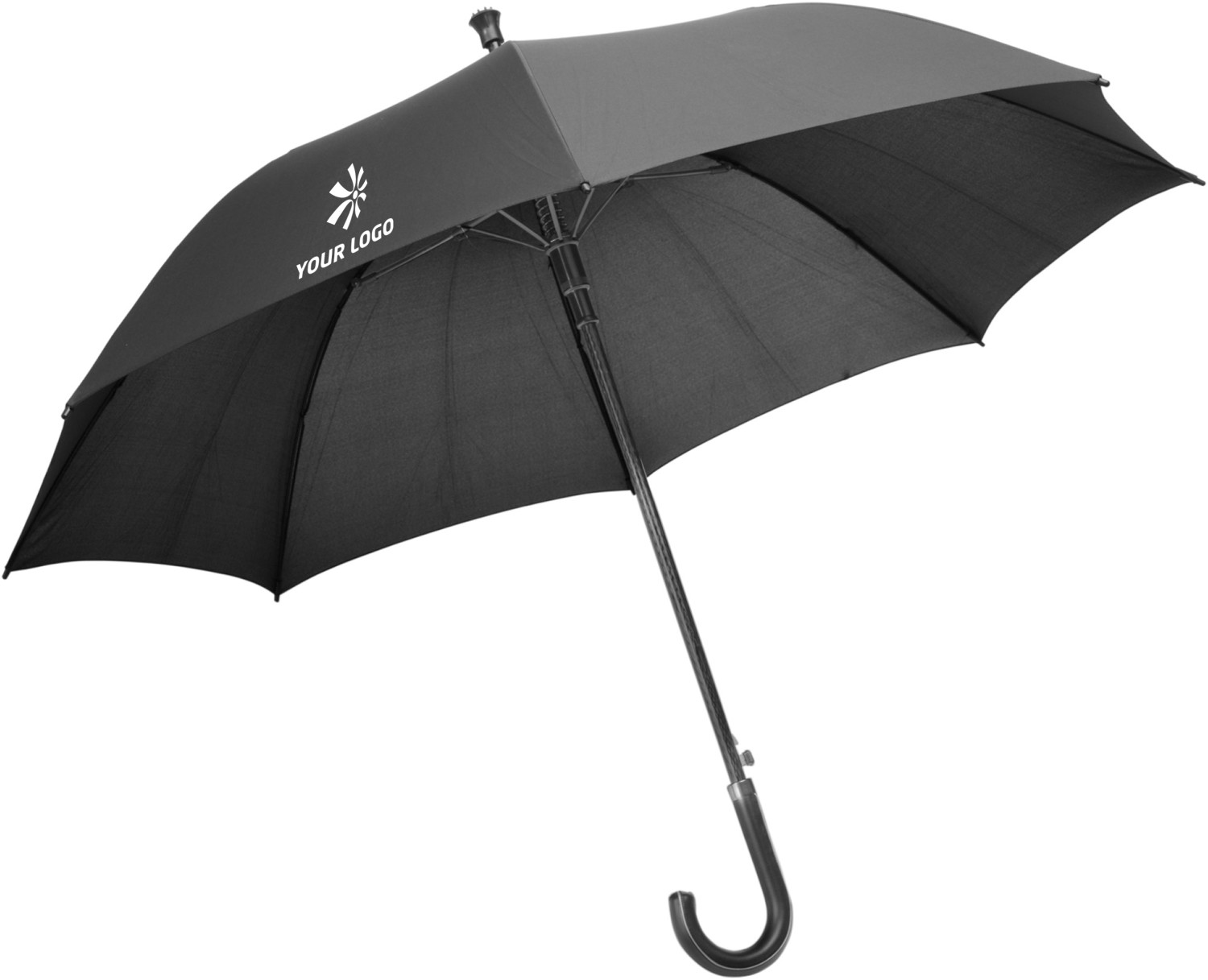 Charles Dickens Automatik-Stockschirm aus Pongee-Seide, mit gebogener Krücke aus PU, Spazierstock-Funktion, Fiberglasschaft und -gestell, Spitze und Tips aus Kunststoff, mit inklusive Hülle.