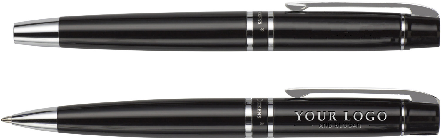 Charles Dickens Schreibset 'Leeds' aus Metall, bestehend aus Dreh-Kugelschreiber und Rollerball, Zierringen aus Metall, verpackt in einem Geschenk-Etui aus PU.