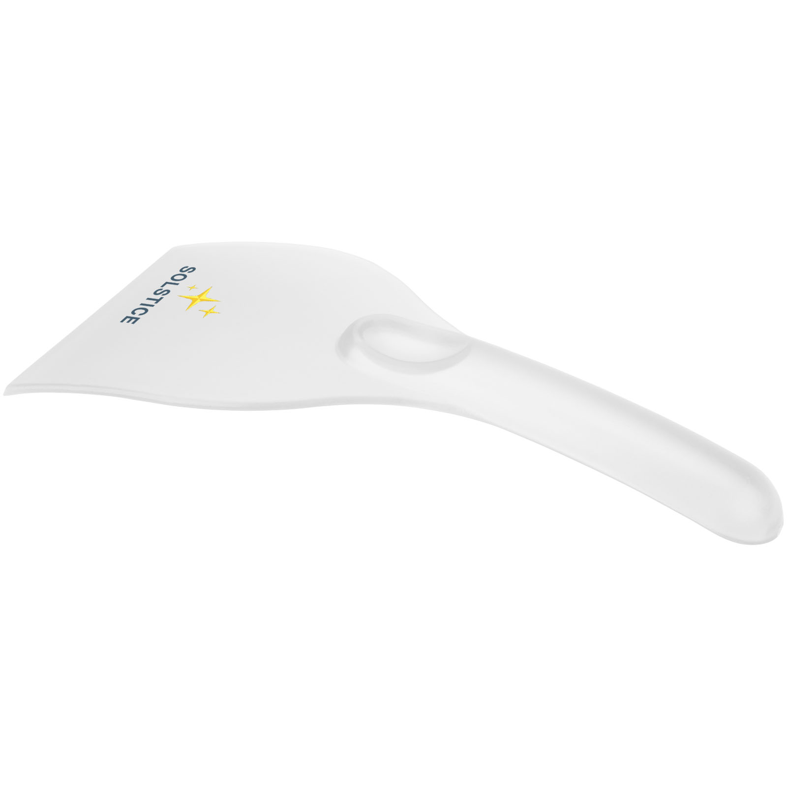 Einfacher Windschutzscheibenkratzer mit großer Werbeanbringungsfläche. Der starke Griff sorgt dafür, dass genügend Druck ausgeübt werden kann, um das gesamte Eis von der Scheibe zu entfernen. Hergestellt in Großbritannien aus recyceltem Kunststoff. Der Eiskratzer hat aufgrund der Beschaffenheit des recycelten Materials eine gesprenkelte Oberfläche.