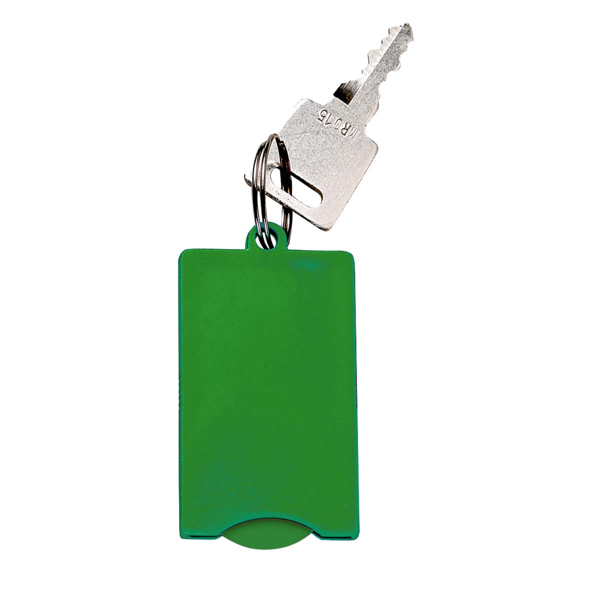 Der Extra-Flache. Rechteckiger Anhänger mit Fach für einen Einkaufswagenchip, in vielen Farben lieferbar. Ohne Schlüsselring. Inklusive Chip.