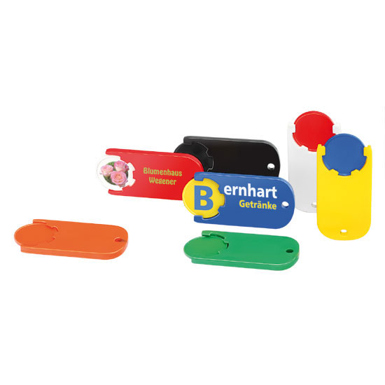 Chiphalter mit 1€-Chip "Alpha" ohne Gliederkette, ohne Schlüsselring. Farbkombinationen möglich. Druckkosten pro Position