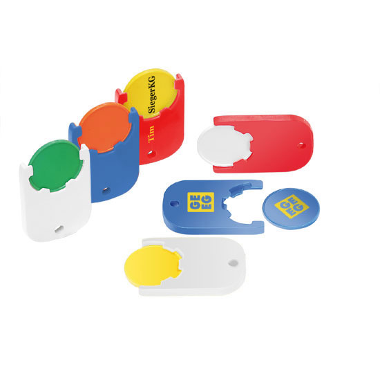 Chiphalter mit 1€-Chip "Gamma" ohne Gliederkette, ohne Schlüsselring. Farbkombinationen möglich. Druckkosten pro Position