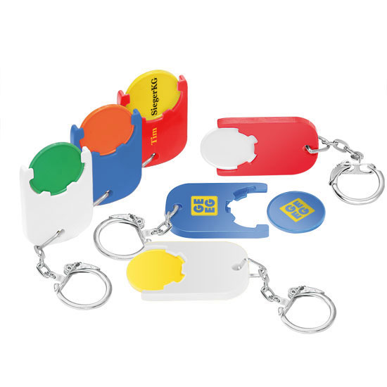 Chiphalter mit 1€-Chip "Gamma" mit Gliederkette. Farbkombinationen möglich. Druckkosten pro Position
