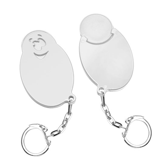 Chiphalter mit 1€-Chip "Gesicht" mit Gliederkette. Farbkombinationen möglich. Druckkosten pro Position