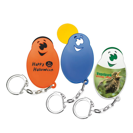 Chiphalter mit 1€-Chip "Gesicht" mit Gliederkette. Farbkombinationen möglich. Druckkosten pro Position