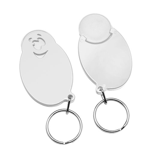 Chiphalter mit 1€-Chip "Gesicht" mit Schlüsselring. Farbkombinationen möglich. Druckkosten pro Position