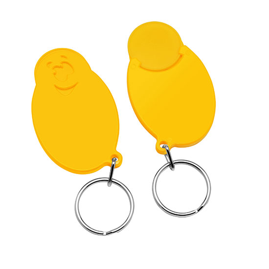 Chiphalter mit 1€-Chip "Gesicht" mit Schlüsselring. Farbkombinationen möglich. Druckkosten pro Position