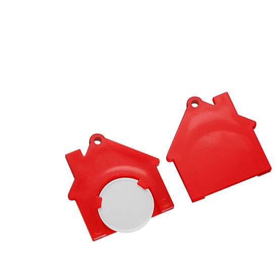 Chiphalter mit 1€-Chip "Haus" ohne Gliederkette, ohne Schlüsselring. Farbkombinationen möglich. Druckkosten pro Position