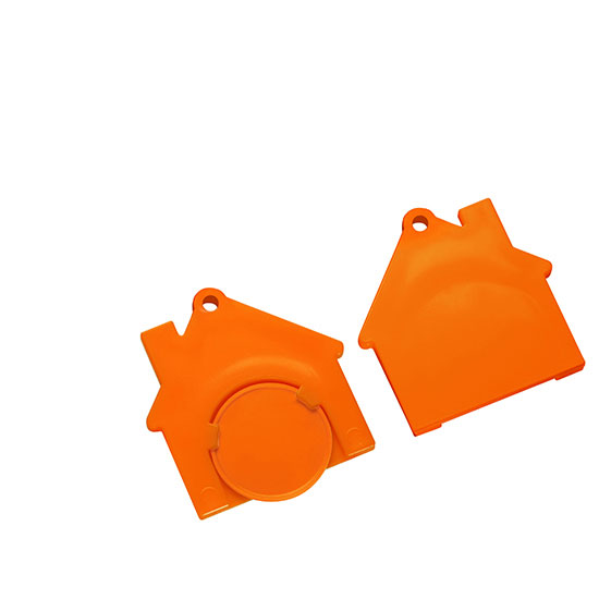 Chiphalter mit 1€-Chip "Haus" ohne Gliederkette, ohne Schlüsselring. Farbkombinationen möglich. Druckkosten pro Position