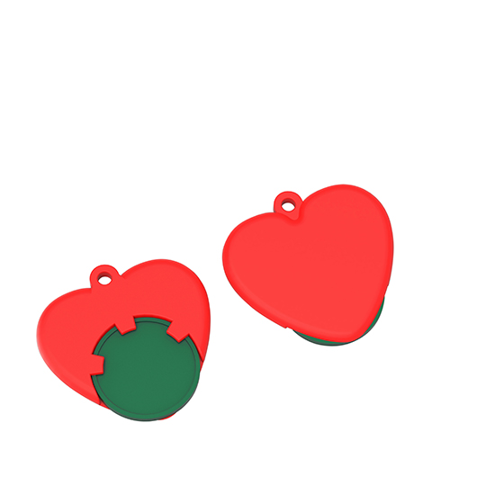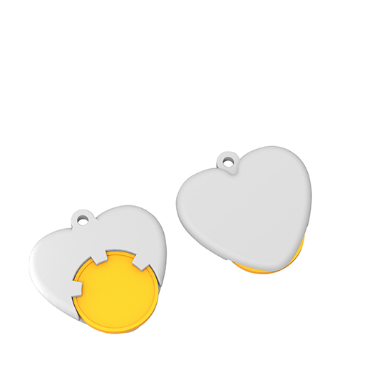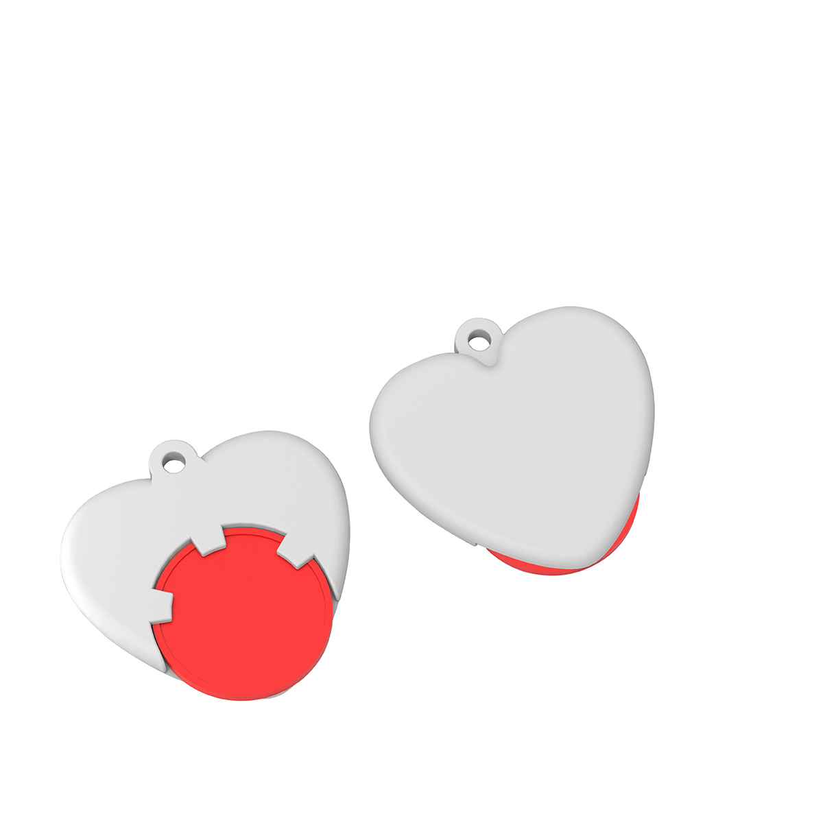 Chiphalter mit 1€-Chip "Herz" ohne Gliederkette, ohne Schlüsselring. Farbkombinationen möglich. Druckkosten pro Position