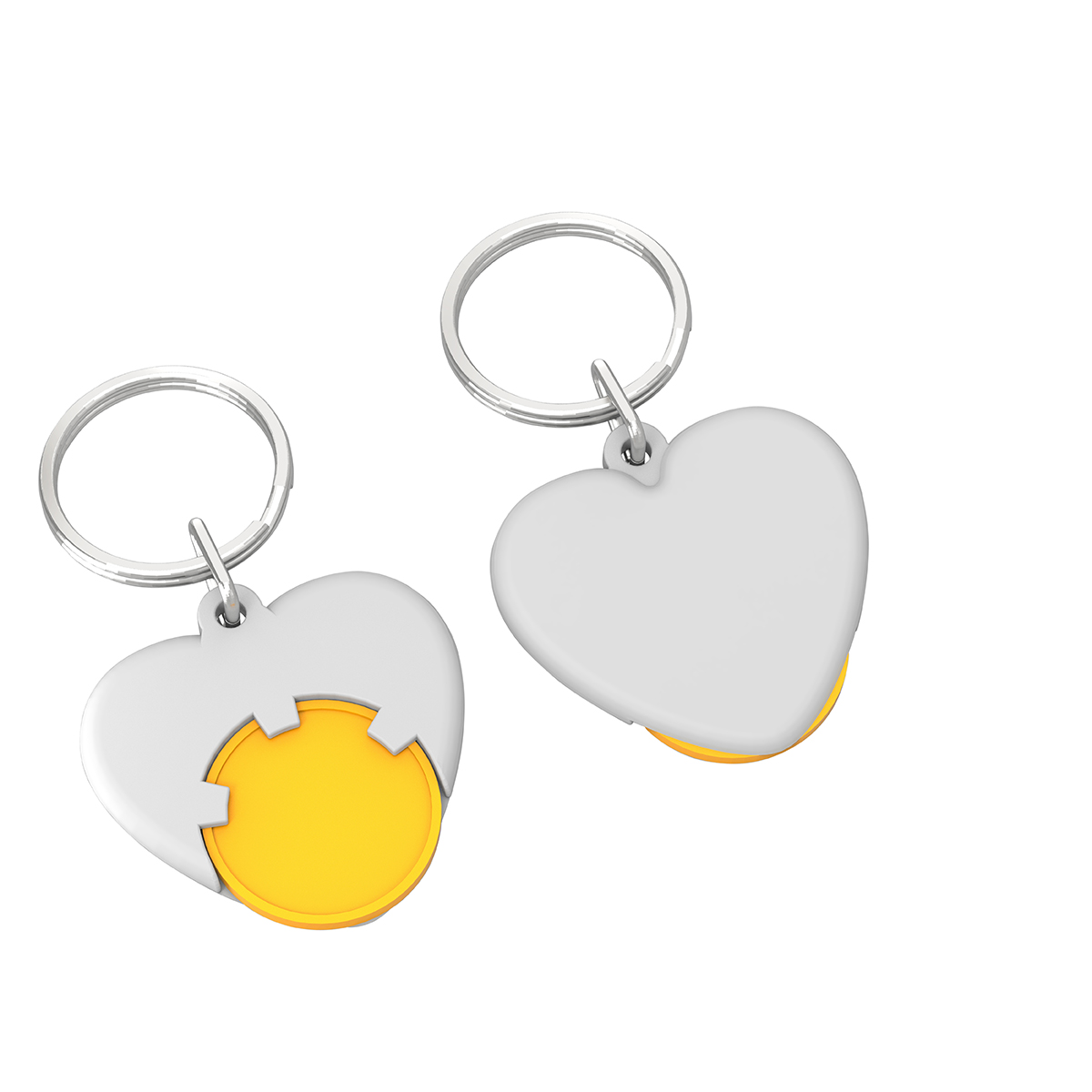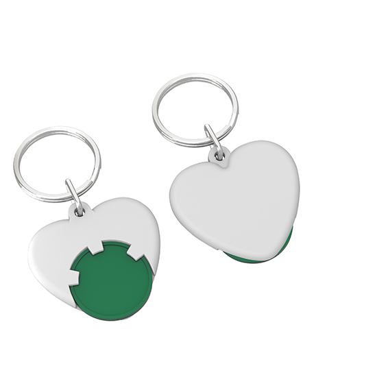 Chiphalter mit 1€-Chip "Herz" mit Schlüsselring. Farbkombinationen möglich. Druckkosten pro Position