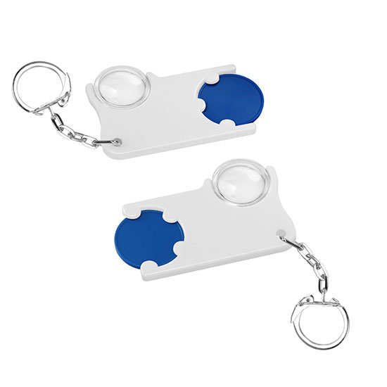 Chiphalter mit 1€-Chip und Lupe mit Gliederkette. Farbkombinationen möglich. Druckkosten pro Position