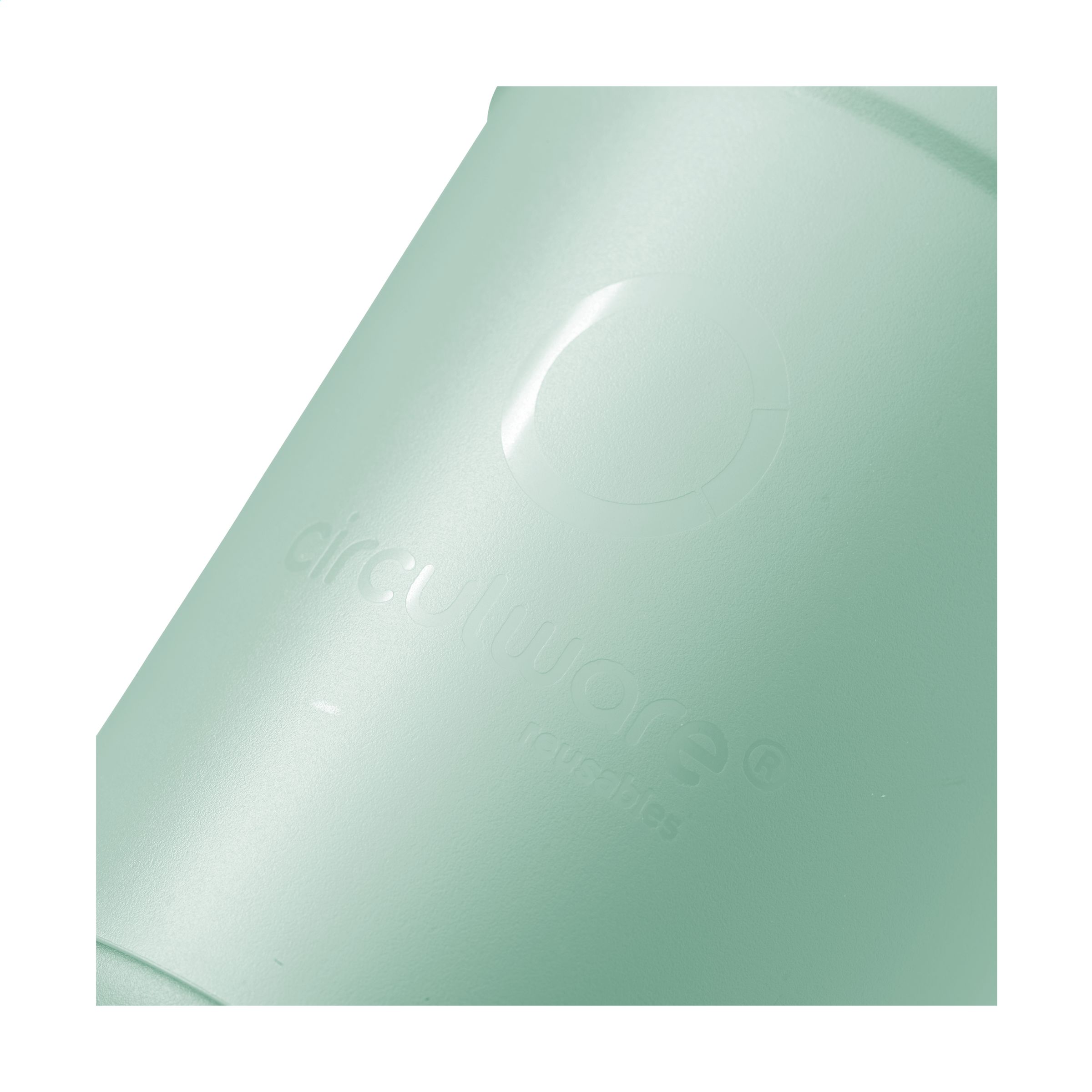 Wiederverwendbarer, stapelbarer Becher der Marke Circulware. Dieser Becher ist aus hochwertigem Kunststoff hergestellt und kann bis zu 500 Mal verwendet werden. Geeignet für einen heißen Kaffee, ein Erfrischungsgetränk oder ein Eis. Eine großartige Alternative zum Einwegbecher. Der Becher ist leicht, einfach zu reinigen und stapelbar, also platzsparend. Für Lebensmittel zugelassen. Spülmaschinengeeignet und mikrowellengeeignet. 100% recycelbar. Damit leistet dieser Becher einen Beitrag zur Kreislaufwirtschaft. Niederländisches Design. Made in Holland. Fassungsvermögen: 200 ml.