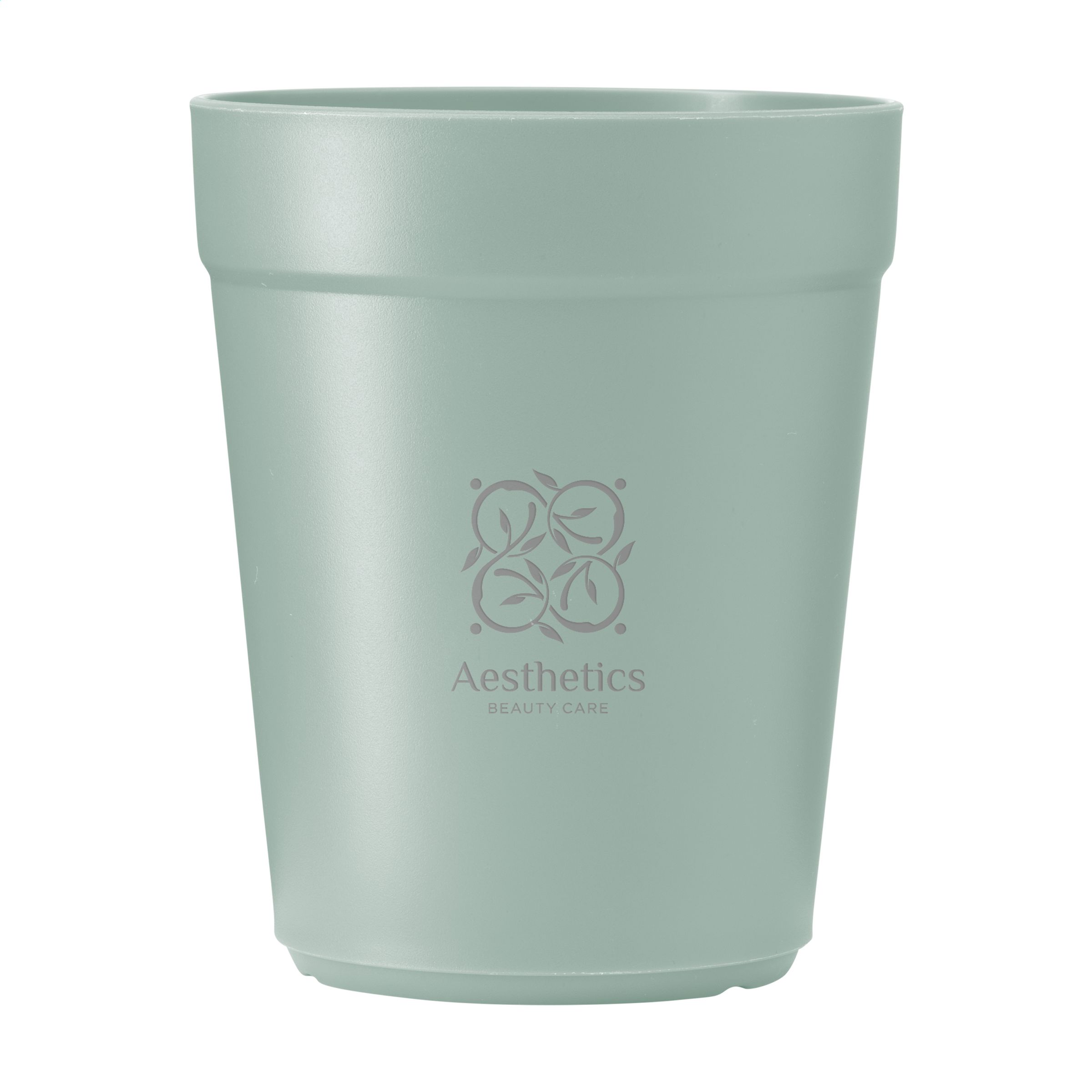 Wiederverwendbarer, stapelbarer Becher der Marke Circulware. Dieser Becher ist aus hochwertigem Kunststoff hergestellt und kann bis zu 500 Mal verwendet werden. Geeignet für einen heißen Kaffee, ein Erfrischungsgetränk oder ein Eis. Eine großartige Alternative zum Einwegbecher. Der Becher ist leicht, einfach zu reinigen und stapelbar, also platzsparend. Für Lebensmittel zugelassen. Spülmaschinengeeignet und mikrowellengeeignet. 100% recycelbar. Damit leistet dieser Becher einen Beitrag zur Kreislaufwirtschaft. Niederländisches Design. Made in Holland. Fassungsvermögen: 300 ml.