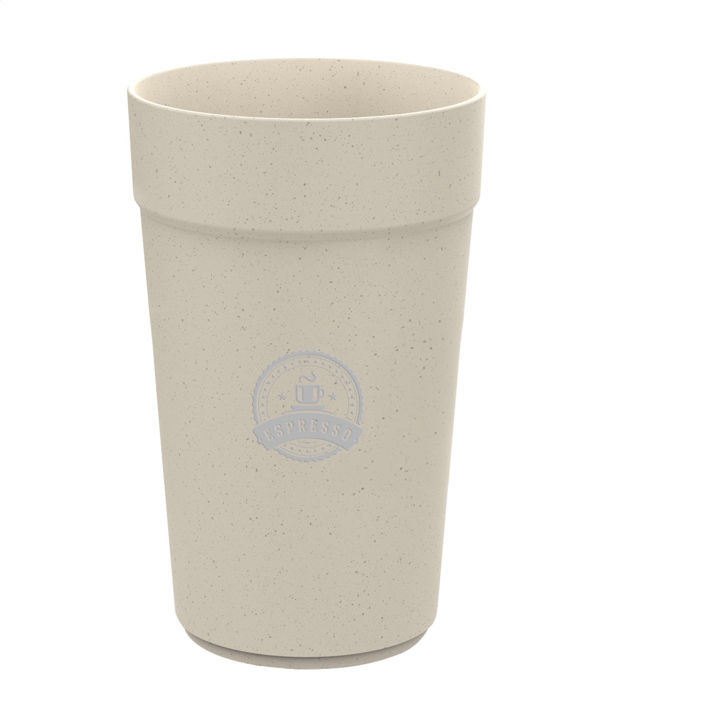 Wiederverwendbarer, stapelbarer Becher mit Deckel der Marke Circulware. Dieser Becher ist aus hochwertigem Kunststoff hergestellt und kann bis zu 500 Mal verwendet werden. Der stapelbare Deckel besteht zu 100 aus recycelbarem Kunststoff und schließt perfekt. Dies macht ihn zu einem idealen Becher für unterwegs. Eine großartige Alternative zum Einwegbecher. Der Becher ist leicht, einfach zu reinigen und stapelbar, also platzsparend. BPA-frei und für Lebensmittel zugelassen. Spülmaschinengeeignet und mikrowellengeeignet. 100% recycelbar. Damit leistet dieser Becher einen Beitrag zur Kreislaufwirtschaft. Niederländisches Design. Made in Holland. Fassungsvermögen: 400 ml.