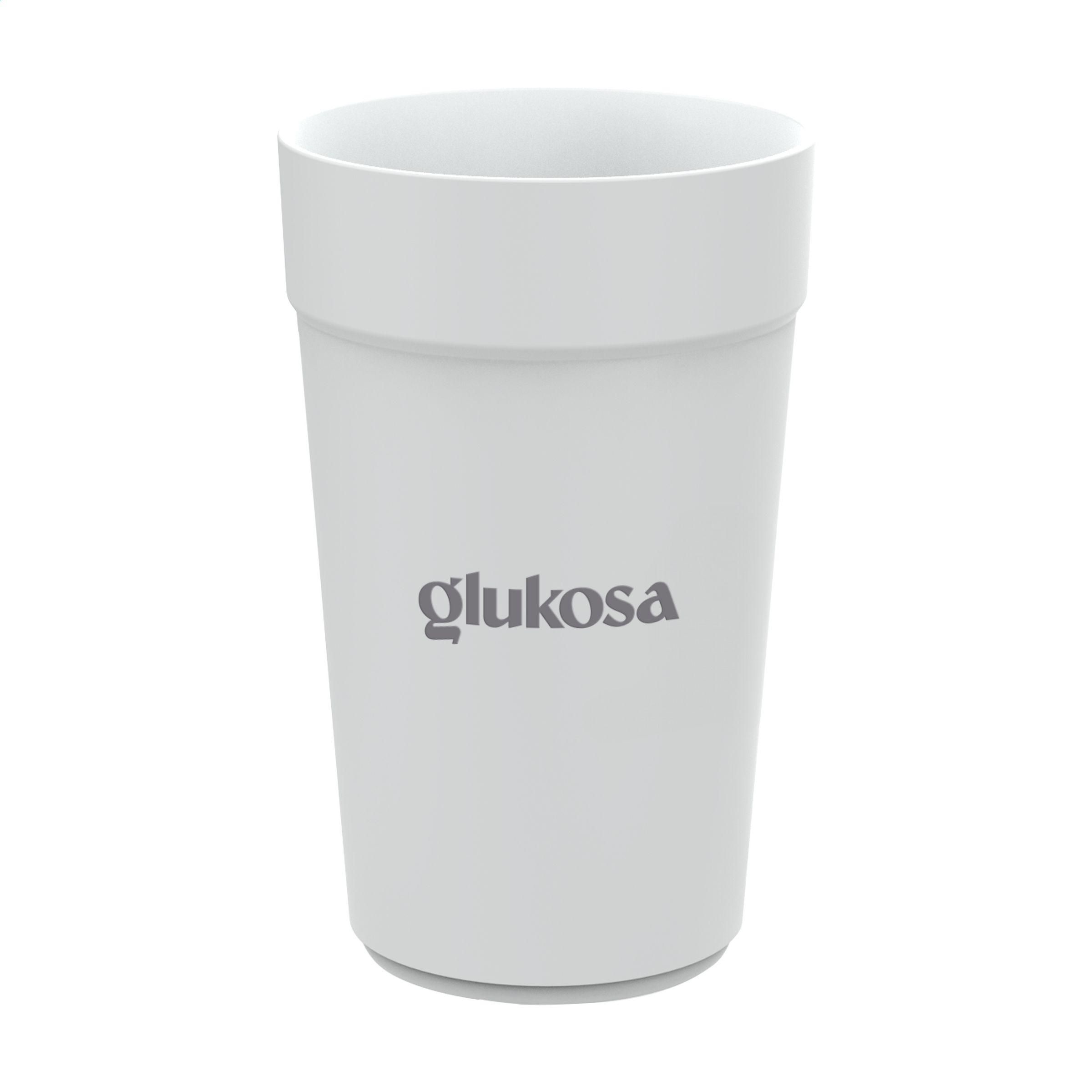 iederverwendbarer, stapelbarer Becher mit Deckel der Marke Circulware. Dieser Becher ist aus hochwertigem Kunststoff hergestellt und kann bis zu 500 Mal verwendet werden. Der stapelbare Deckel besteht zu 100 aus recycelbarem Kunststoff und schließt perfekt. Dies macht ihn zu einem idealen Becher für unterwegs. Eine großartige Alternative zum Einwegbecher. Der Becher ist leicht, einfach zu reinigen und stapelbar, also platzsparend. BPA-frei und für Lebensmittel zugelassen. Spülmaschinengeeignet und mikrowellengeeignet. 100% recycelbar. Damit leistet dieser Becher einen Beitrag zur Kreislaufwirtschaft. Niederländisches Design. Made in Holland. Fassungsvermögen: 400 ml.