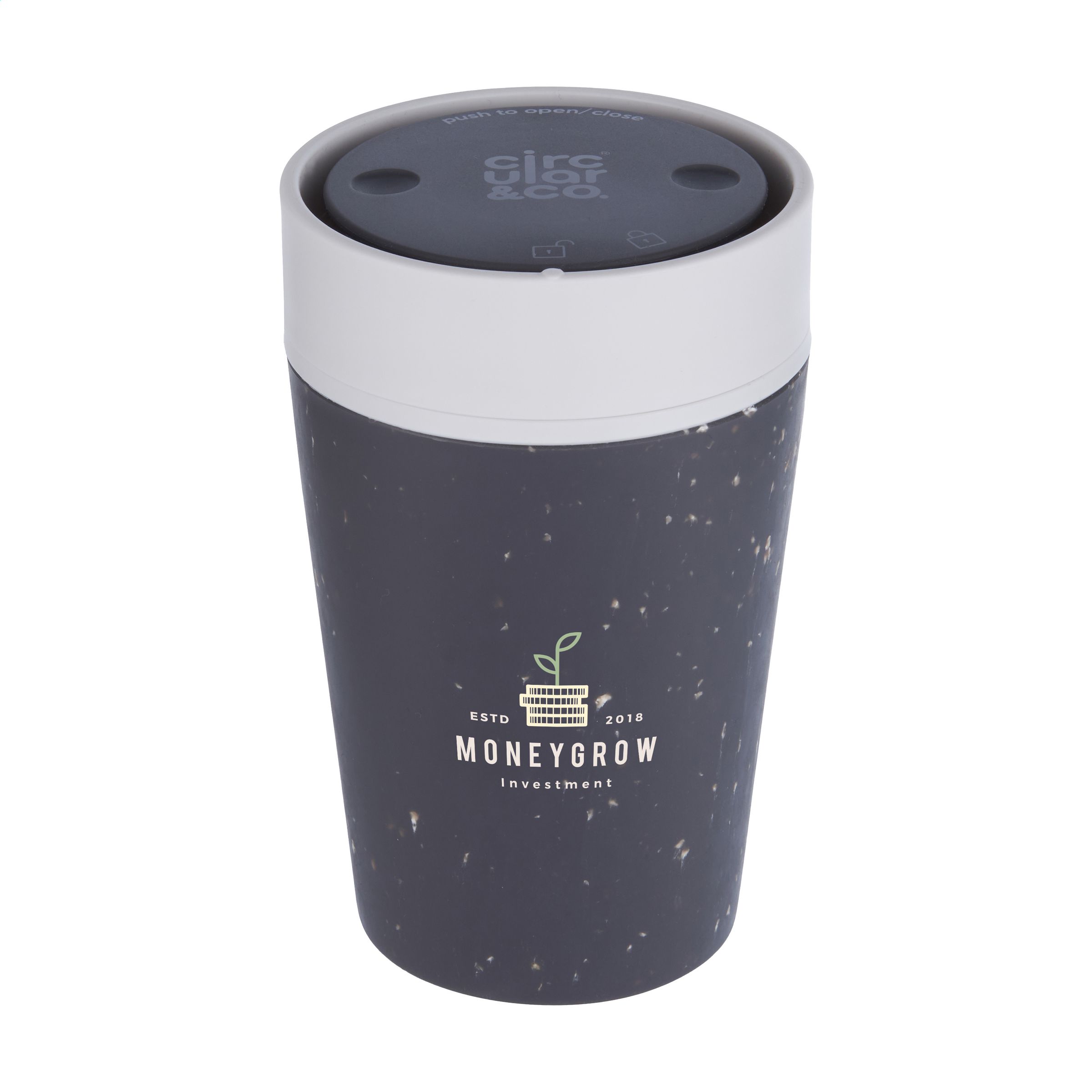 Doppelwandiger, wiederverwendbarer Kaffeebecher-to-go mit Deckel von Circular&Co. Die äußere Isolierschicht dieses Bechers wird aus gebrauchten, recycelten Einweg-Kaffeebechern aus Papier hergestellt. Mit Innenwand und Deckel aus PP. 100% auslaufsicher. Die isolierende Wirkung hält Ihr Heißgetränk länger heiß und Ihr Kaltgetränk länger kalt. Der Deckel ist mit der patentierten 360-Grad-Technologie ausgestattet, die es Ihnen ermöglicht, aus jedem Winkel zu nippen. Der Kaffeebecher lässt sich mit einer Hand und einem Klick öffnen und schließen. Ideal für unterwegs. Spülmaschinengeeignet. Um den Aufdruck zu erhalten, wird Waschen von Hand empfohlen. Fassungsvermögen: 227 ml. EXTRA INFO: Bei einer Mindestbestellmenge von 5.000 Stück ist der Deckel dieses Produkts in jeder PMS-Farbe erhältlich. Auf diese Weise schaffen Sie eine perfekte Übereinstimmung zwischen Produkt und Aufdruck. Verpackt pro Stück.