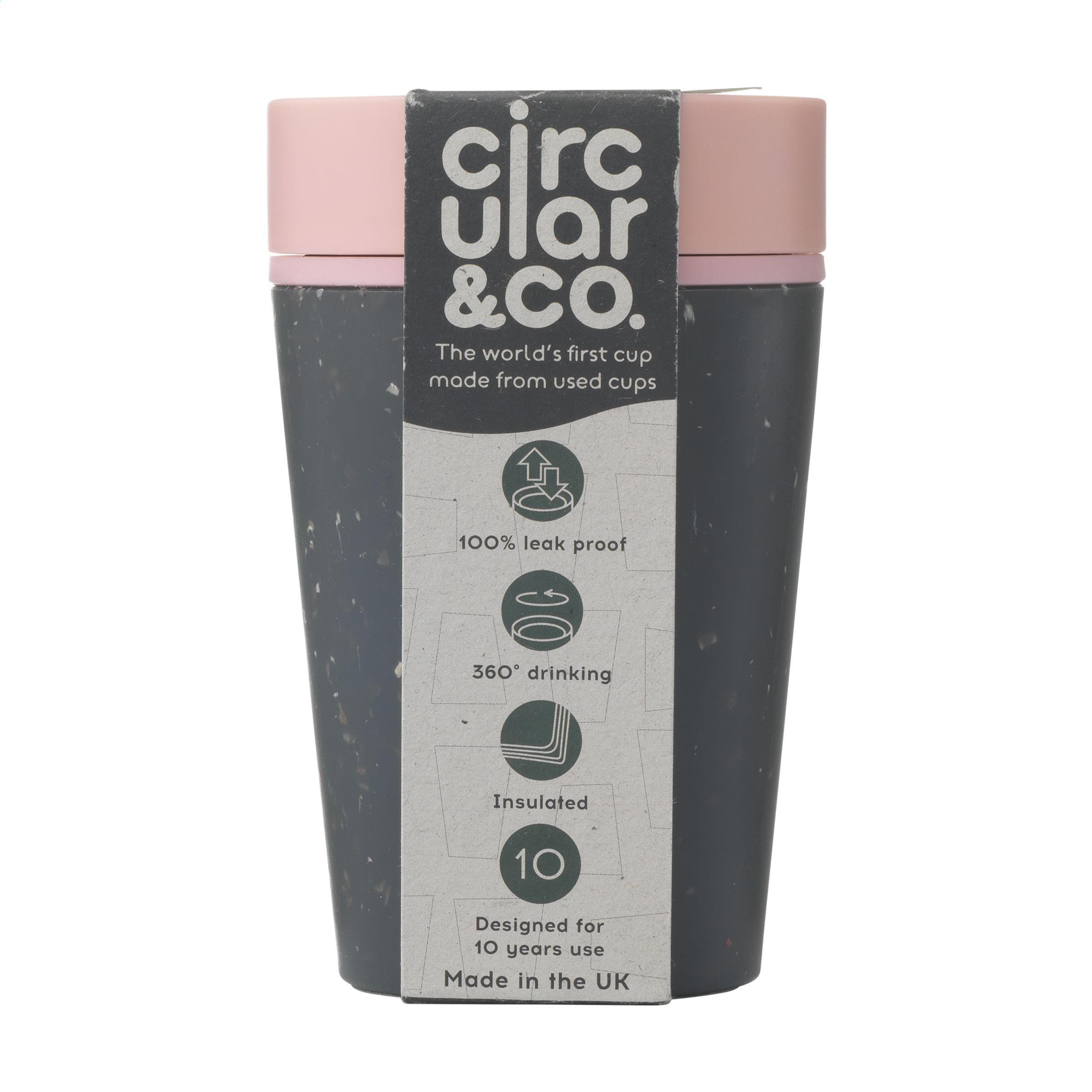 Doppelwandiger, wiederverwendbarer Kaffeebecher-to-go mit Deckel von Circular&Co. Die äußere Isolierschicht dieses Bechers wird aus gebrauchten, recycelten Einweg-Kaffeebechern aus Papier hergestellt. Mit Innenwand und Deckel aus PP. 100% auslaufsicher. Die isolierende Wirkung hält Ihr Heißgetränk länger heiß und Ihr Kaltgetränk länger kalt. Der Deckel ist mit der patentierten 360-Grad-Technologie ausgestattet, die es Ihnen ermöglicht, aus jedem Winkel zu nippen. Der Kaffeebecher lässt sich mit einer Hand und einem Klick öffnen und schließen. Ideal für unterwegs. Spülmaschinengeeignet. Um den Aufdruck zu erhalten, wird Waschen von Hand empfohlen. Fassungsvermögen: 227 ml. EXTRA INFO: Bei einer Mindestbestellmenge von 5.000 Stück ist der Deckel dieses Produkts in jeder PMS-Farbe erhältlich. Auf diese Weise schaffen Sie eine perfekte Übereinstimmung zwischen Produkt und Aufdruck. Verpackt pro Stück.