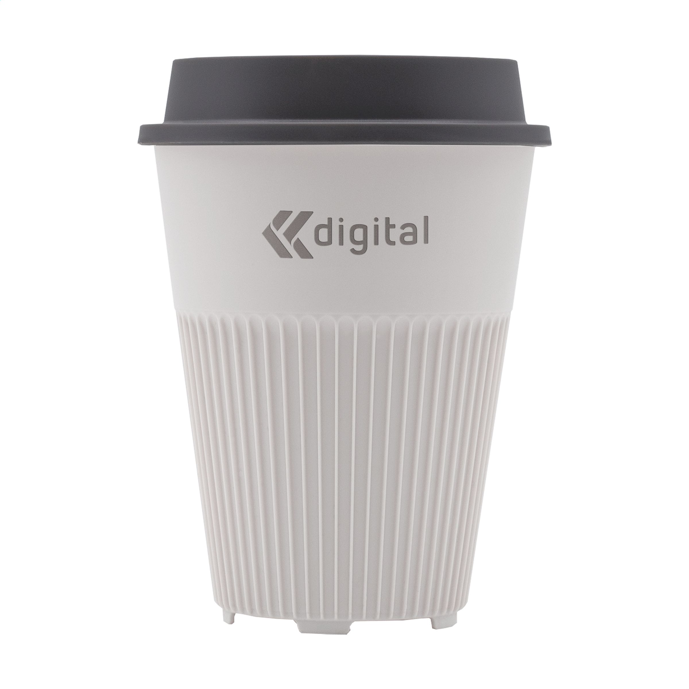 Wiederverwendbarer Kaffee-to-go-Becher mit Deckel von Circular&Co. Hergestellt aus 100% recyclebarem, robustem PP. Dieser stapelbare Becher sieht nicht nur attraktiv aus, das Design legt auch den Fokus auf Funktionalität. Die Rippen leiten die Wärme des Getränks ab und bieten einen angenehmen Griff. Außerdem hat der Becher einen schnell trocknenden Boden. Der Deckel mit Trinköffnung verhindert das Verschütten von Getränken. Passt in den Standard-Getränkehalter von Autos, also perfekt für unterwegs, aber auch als Becher an der Kaffeemaschine. Die perfekte Alternative zum Einweg-Kaffeebecher. Dieser Becher hält mehr als 500 Waschgänge und ist bis zu 6 Mal recycelbar. Nach nur 2 Benutzungen sind die CO2-Emissionen des Coffee-to-go-Bechers im Vergleich zu einer Einweg-Alternative ausgeglichen. Das bedeutet, dass große Mengen an CO2 nicht in die Atmosphäre gelangen. Durch den Wechsel zu einem wiederverwendbaren Becher landen Milliarden von Bechern weniger auf der Mülldeponie. Nur für die Spülmaschine im oberen Geschirrkorb geeignet. Fassungsvermögen 340 ml.