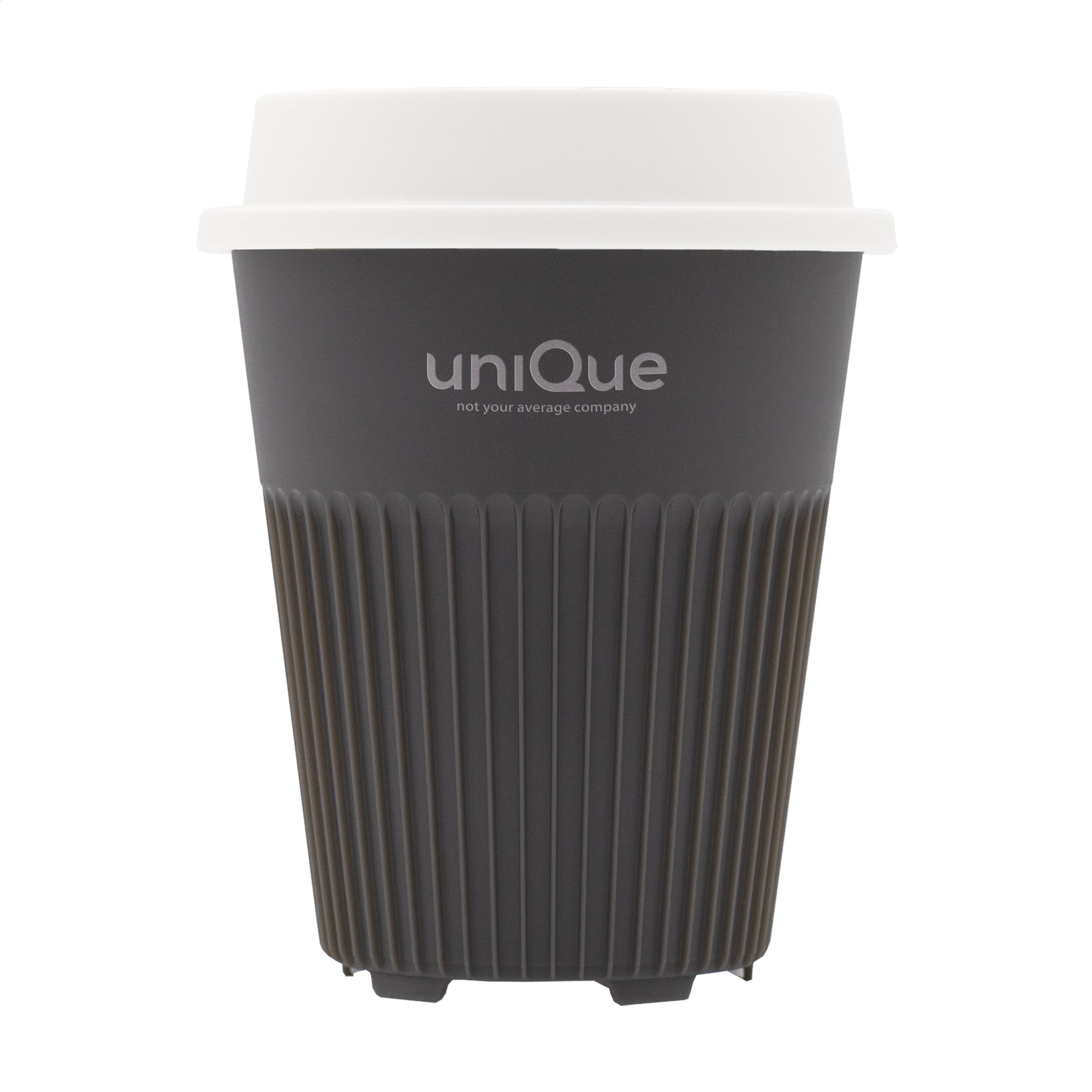 Wiederverwendbarer Kaffee-to-go-Becher mit Deckel von Circular&Co. Hergestellt aus 100% recyclebarem, robustem PP. Dieser stapelbare Becher sieht nicht nur attraktiv aus, das Design legt auch den Fokus auf Funktionalität. Die Rippen leiten die Wärme des Getränks ab und bieten einen angenehmen Griff. Außerdem hat der Becher einen schnell trocknenden Boden. Der Deckel mit Trinköffnung verhindert das Verschütten von Getränken. Passt in den Standard-Getränkehalter von Autos, also perfekt für unterwegs, aber auch als Becher an der Kaffeemaschine. Die perfekte Alternative zum Einweg-Kaffeebecher. Dieser Becher hält mehr als 500 Waschgänge und ist bis zu 6 Mal recycelbar. Nach nur 2 Benutzungen sind die CO2-Emissionen des Coffee-to-go-Bechers im Vergleich zu einer Einweg-Alternative ausgeglichen. Das bedeutet, dass große Mengen an CO2 nicht in die Atmosphäre gelangen. Durch den Wechsel zu einem wiederverwendbaren Becher landen Milliarden von Bechern weniger auf der Mülldeponie. Nur für die Spülmaschine im oberen Geschirrkorb geeignet. Fassungsvermögen 340 ml.