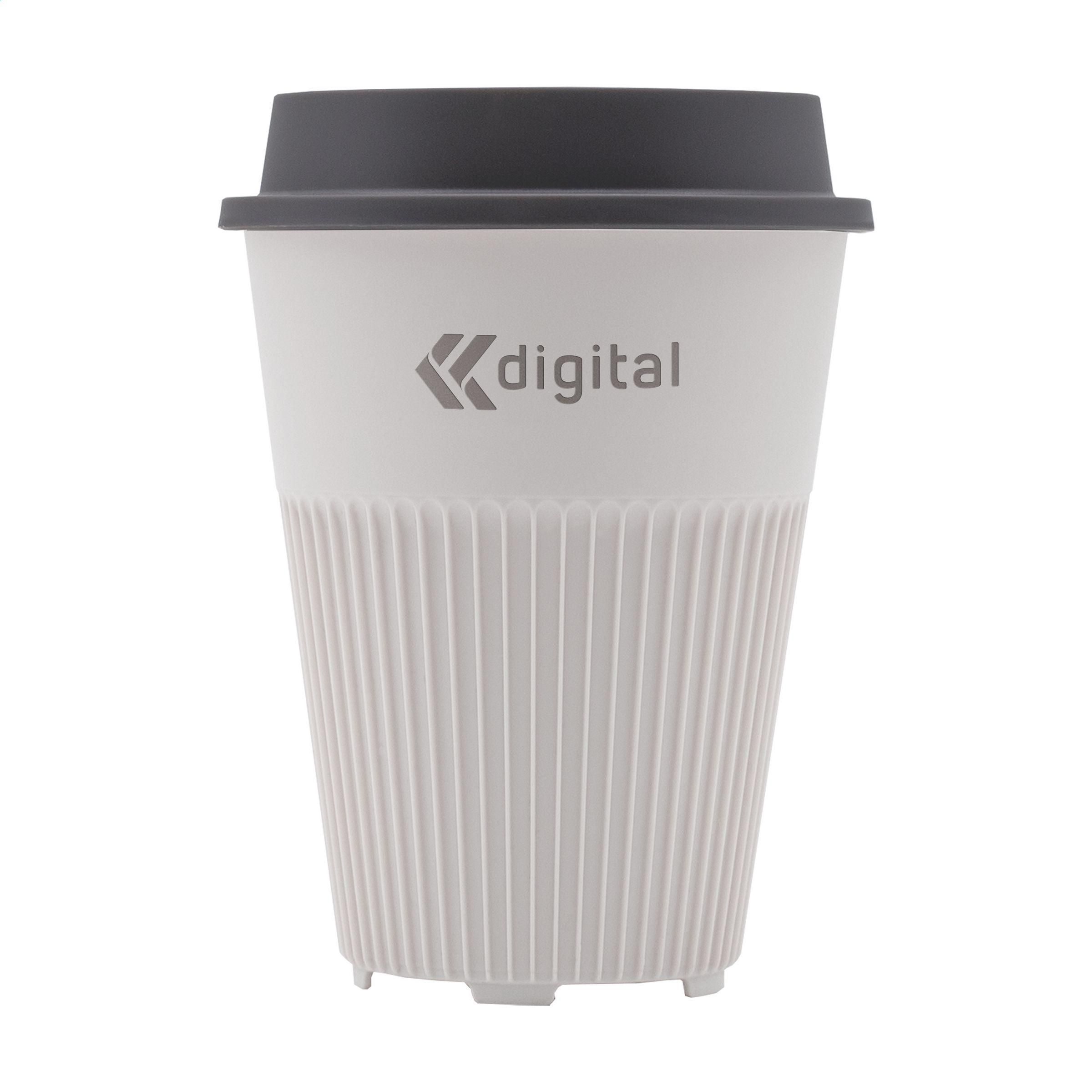 iederverwendbarer Kaffee-to-go-Becher mit Deckel von Circular&Co. Hergestellt aus 100% recyclebarem, robustem PP. Dieser stapelbare Becher sieht nicht nur attraktiv aus, das Design legt auch den Fokus auf Funktionalität. Die Rippen leiten die Wärme des Getränks ab und bieten einen angenehmen Griff. Außerdem hat der Becher einen schnell trocknenden Boden. Der Deckel mit Trinköffnung verhindert das Verschütten von Getränken. Passt in den Standard-Getränkehalter von Autos, also perfekt für unterwegs, aber auch als Becher an der Kaffeemaschine. Die perfekte Alternative zum Einweg-Kaffeebecher. Dieser Becher hält mehr als 500 Waschgänge und ist bis zu 6 Mal recycelbar. Nach nur 2 Benutzungen sind die CO2-Emissionen des Coffee-to-go-Bechers im Vergleich zu einer Einweg-Alternative ausgeglichen. Das bedeutet, dass große Mengen an CO2 nicht in die Atmosphäre gelangen. Durch den Wechsel zu einem wiederverwendbaren Becher landen Milliarden von Bechern weniger auf der Mülldeponie. Nur für die Spülmaschine im oberen Geschirrkorb geeignet. Fassungsvermögen 340 ml.