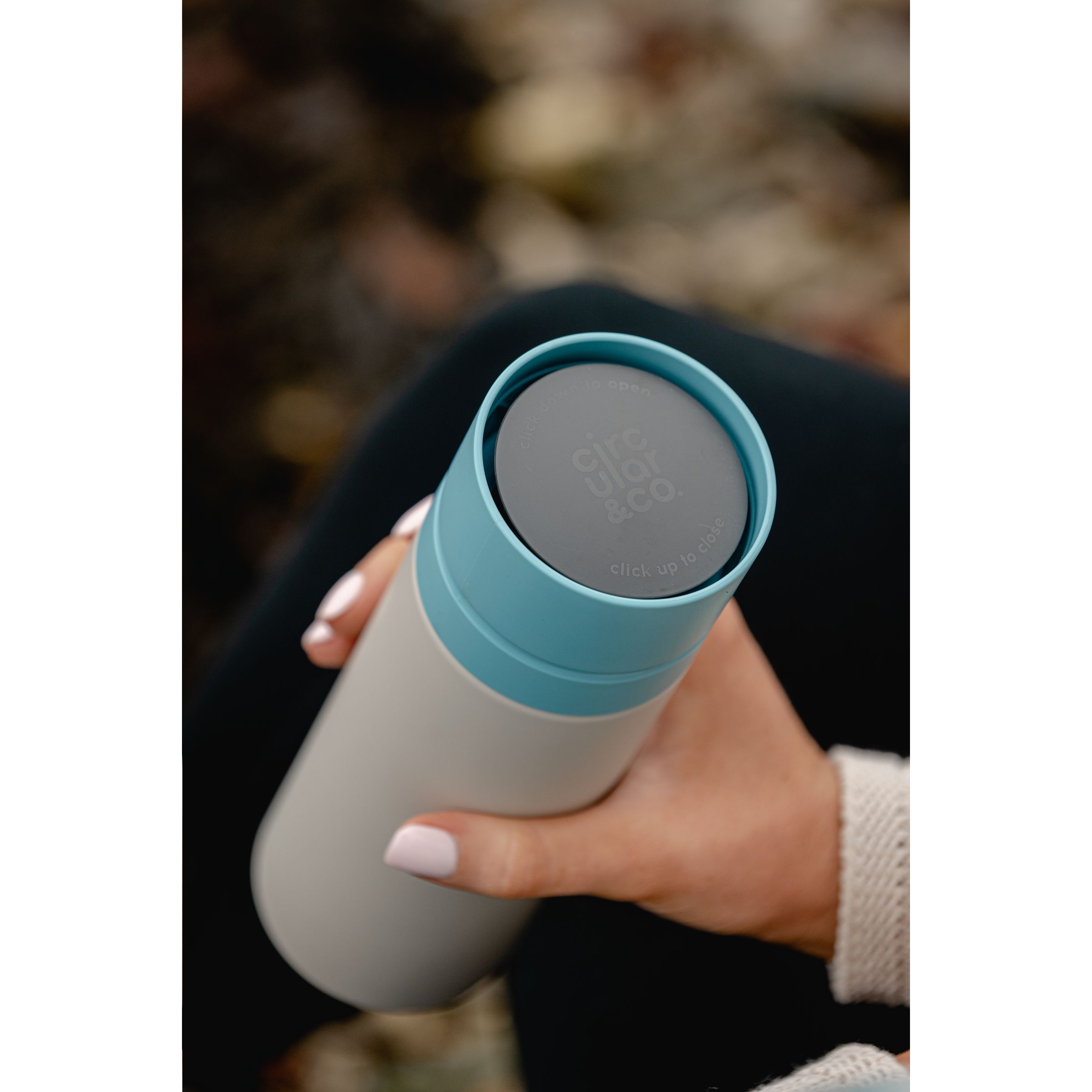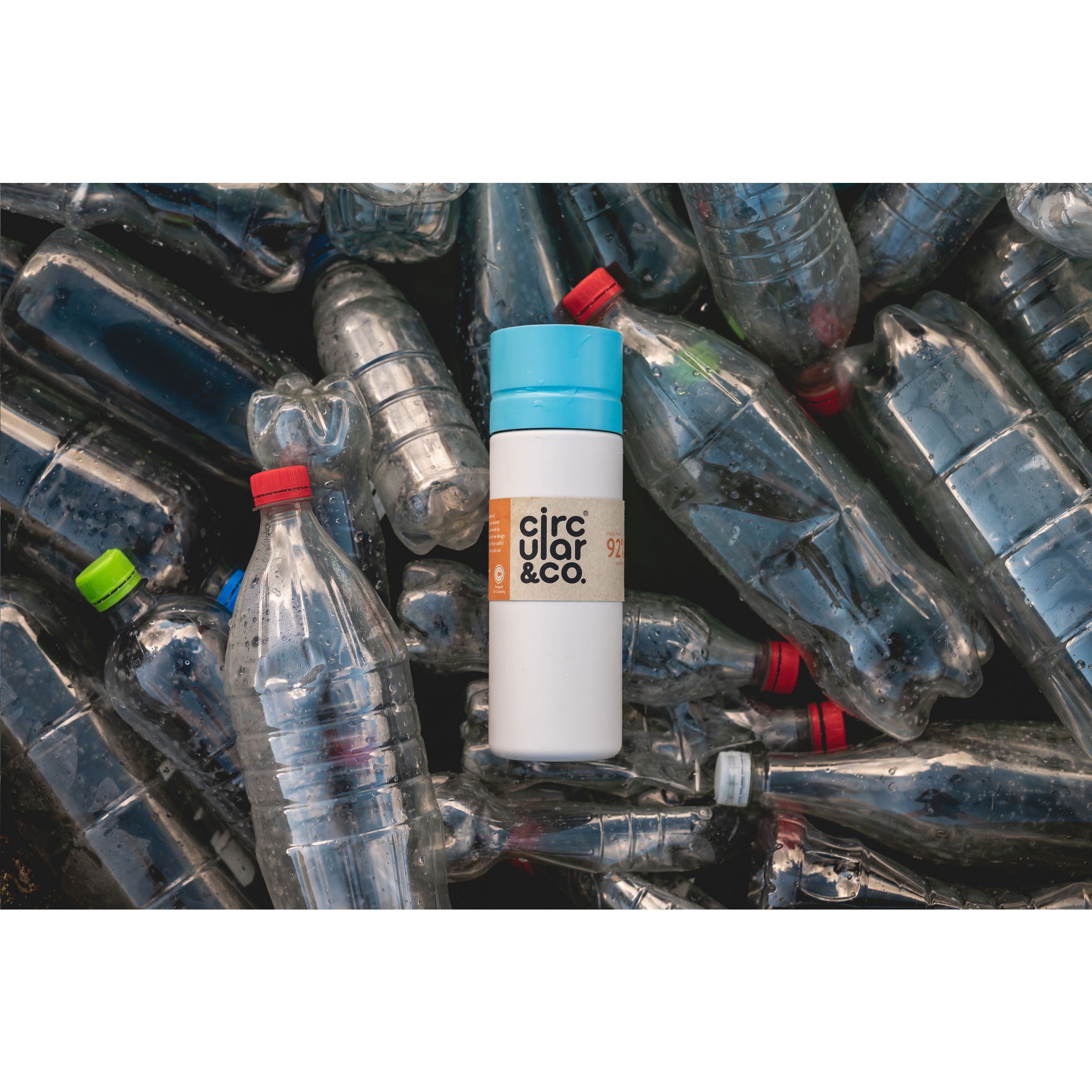 Wasserflasche von Circular&Co. Diese Flasche besteht zu 92% aus 14 gebrauchten und recycelten PET-Flaschen. Der Schraubverschluss ist mit einer patentierten 360-Grad-Technologie ausgestattet, sodass Sie aus jedem Winkel trinken können. Die Push-Click-Kappe lässt sich mit einer Hand und einem Klick öffnen und schließen. Ideal für unterwegs. Die Flasche ist superleicht, 100% recycelbar und 100% auslaufsicher. Nicht für Heißgetränke geeignet. Nur der Deckel ist spülmaschinengeeignet, allerdings nur in der obersten Schublade der Spülmaschine. Fassungsvermögen: 600 ml. EXTRA INFO: Bei einer Mindestbestellmenge von 5.000 Stück ist der Deckel dieses Produkts in jeder PMS-Farbe erhältlich. Auf diese Weise schaffen Sie eine perfekte Übereinstimmung zwischen Produkt und Aufdruck.