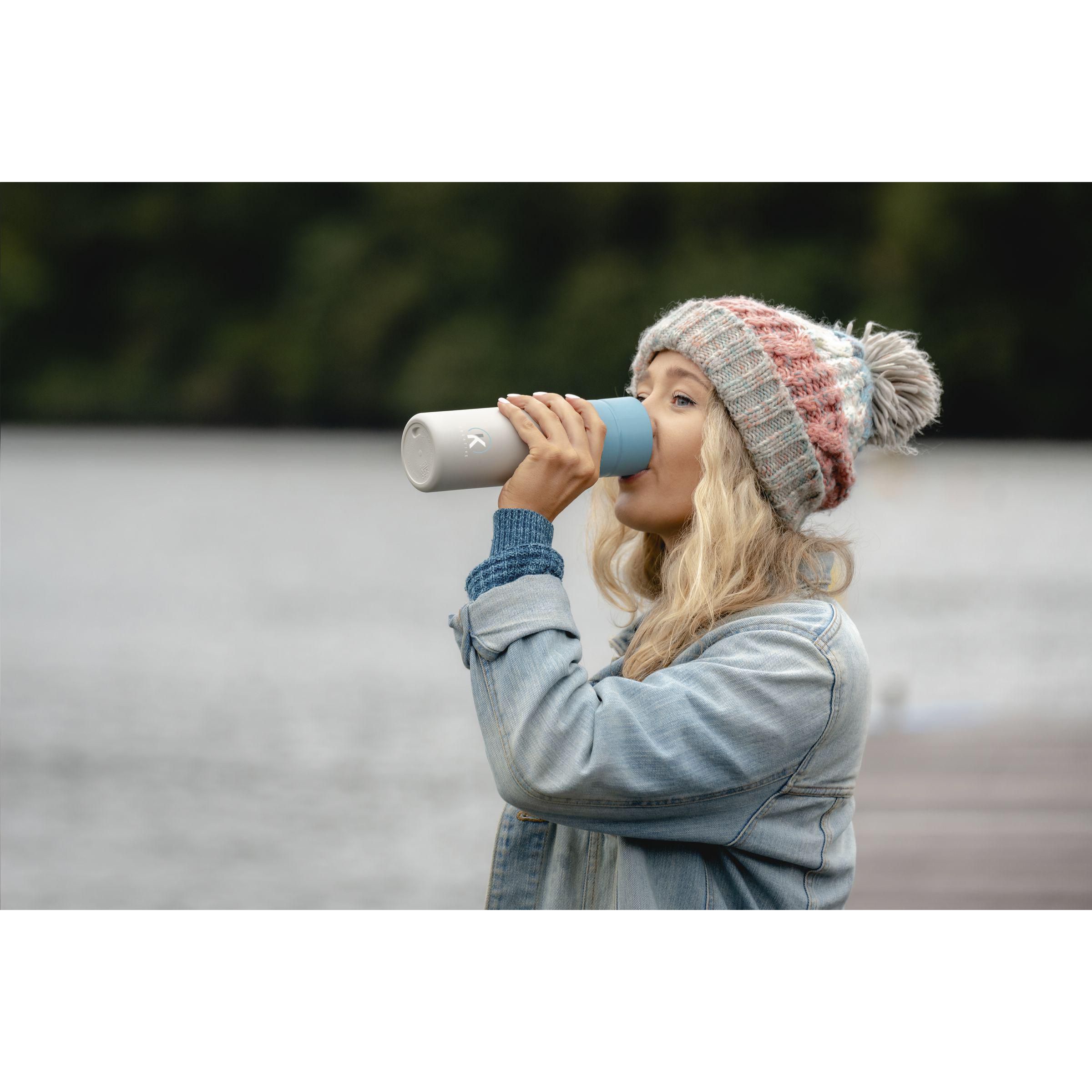 asserflasche von Circular&Co. Diese Flasche besteht zu 92% aus 14 gebrauchten und recycelten PET-Flaschen. Der Schraubverschluss ist mit einer patentierten 360-Grad-Technologie ausgestattet, sodass Sie aus jedem Winkel trinken können. Die Push-Click-Kappe lässt sich mit einer Hand und einem Klick öffnen und schließen. Ideal für unterwegs. Die Flasche ist superleicht, 100% recycelbar und 100% auslaufsicher. Nicht für Heißgetränke geeignet. Nur der Deckel ist spülmaschinengeeignet, allerdings nur in der obersten Schublade der Spülmaschine. Fassungsvermögen: 600 ml. EXTRA INFO: Bei einer Mindestbestellmenge von 5.000 Stück ist der Deckel dieses Produkts in jeder PMS-Farbe erhältlich. Auf diese Weise schaffen Sie eine perfekte Übereinstimmung zwischen Produkt und Aufdruck.