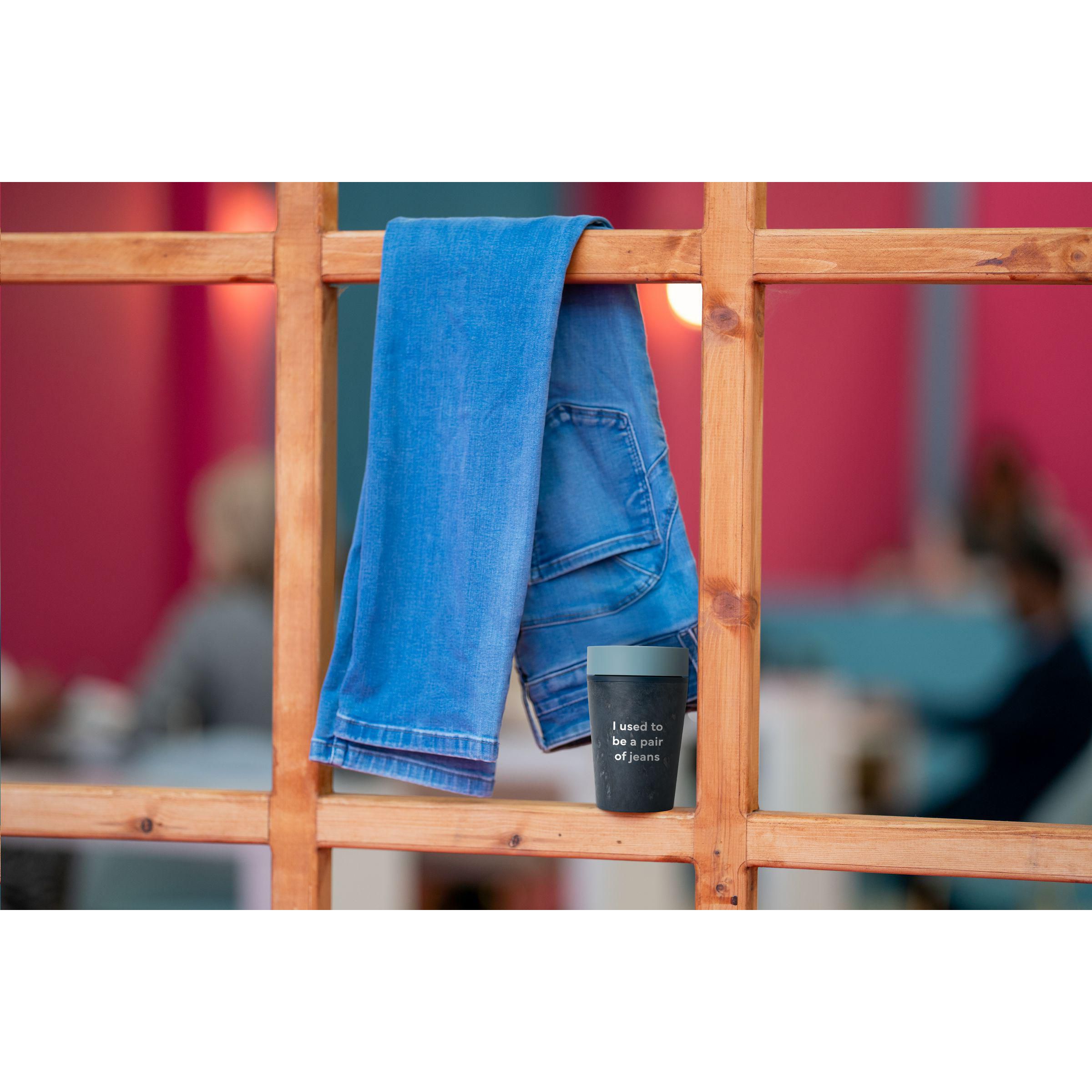 Doppelwandiger, wiederverwendbarer Kaffeebecher zum Mitnehmen mit Deckel von Circulair&Co. Die äußere Isolierschicht dieses Bechers besteht aus recycelten Jeans. Unerwünschte, nicht wiederverwendbare Jeans aus Großbritannien werden gesammelt und in einem energieeffizienten mechanischen Verfahren zu Granulat aus 100% recyceltem Material verarbeitet, ohne schädliche Chemikalien oder Bindemittel. Dieses Granulat macht 30% der äußeren Schicht dieses Bechers aus, die restlichen 70% bestehen aus recyceltem Kunststoff.Die Innenwand, der Deckel und alle Teile, die mit dem Getränk in Kontakt kommen, bestehen aus zertifizierten (recycelten) Materialien, die für Lebensmittel geeignet sind, sodass der Becher sicher verwendet werden kann.Dank der isolierenden Wirkung bleiben Ihre Getränke bis zu 60-90 Minuten warm oder kalt. Der Deckel wurde mit einer patentierten 360-Grad-Technologie ausgestattet, die es Ihnen ermöglicht, aus jedem Winkel zu nippen. Der Kaffeebecher lässt sich mit einer Hand und einem Klick öffnen und schließen. Mit neuem Trust-Lock™-Twist-Verschluss. 100% auslauf- und tropfsicher. Ideal für unterwegs. 100% recycelbar. Spülmaschinengeeignet (im oberen Fach platzieren). Um den Aufdruck zu erhalten, wird Handwäsche empfohlen. Eine stilvolle Alternative zu Einwegbechern. Hergestellt in Großbritannien. Fassungsvermögen 227 ml.