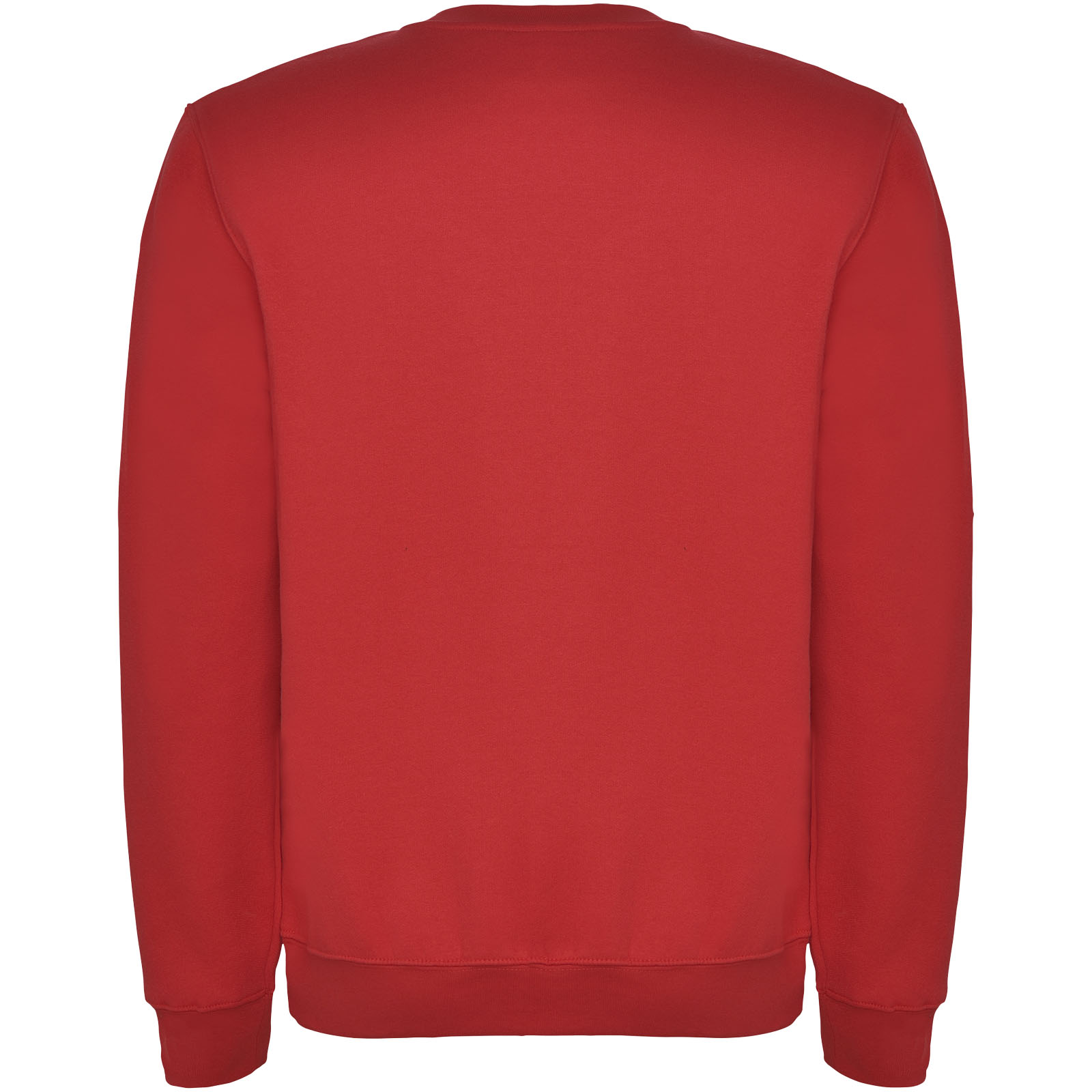 Klassisches Sweatshirt mit 1×1 Elastanripp an Kragen, Ärmelbündchen und Bund. Verstärkte und verdeckte Nähte am Kragen. Herausnehmbares Etikett.