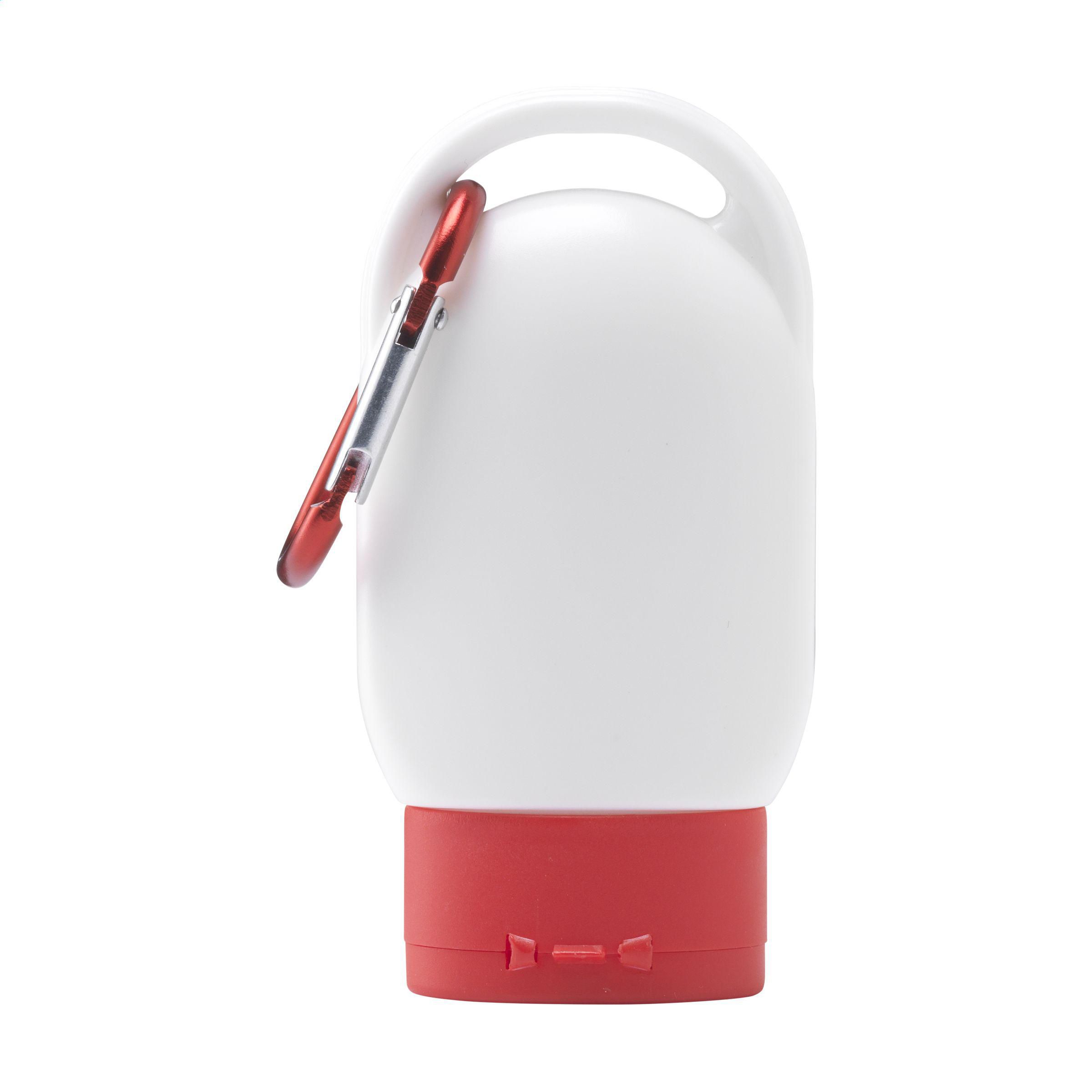 Sonnenschutzlotion (Faktor 30) in einer handlichen Plastikflasche mit farbigem Verschluss und passendem Metallkarabiner. Lässt sich mit einem Klick an der Tasche, dem Rucksack oder der Gürtelschlaufe befestigen. Mindesthaltbarkeit bis zu 12 Monate nach dem Öffnen. Inhalt 30 ml. Zutaten: aqua, glycerin, ethylhexyl methoxycinnamate, octocrylene, Ethylhexyl Salicylate, Isopropyl myristate, cetearyl alcohol, butyl methoxydibenzoylmethane, ceteth-25, glyceryl stearate, titanium dioxide, dibutyl adipate, phenoxyethanol, parfum, methylparaben, propylparaben,BHT, disodium EDTA, vanillin, coumarin.