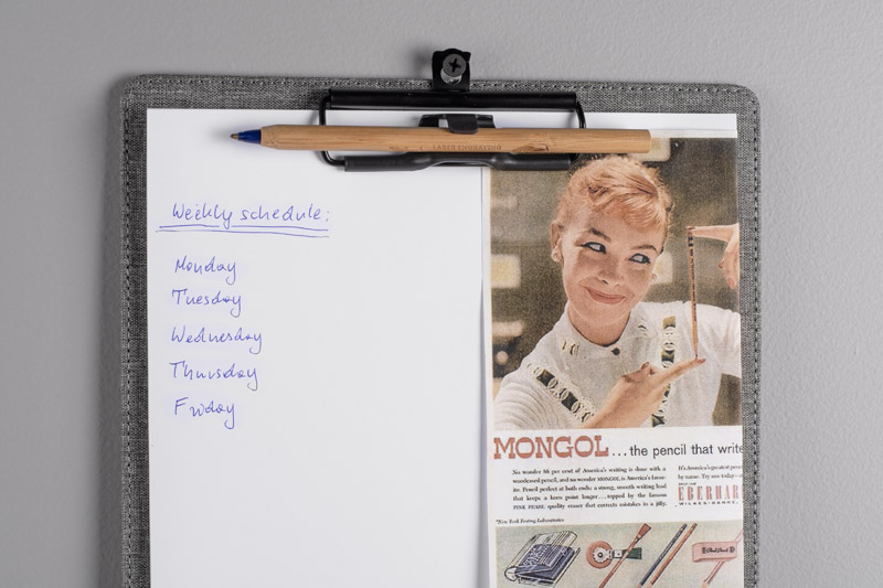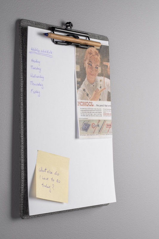 Die Unterlage CLIPAD ist ein unverzichtbares Gadget für alle Konferenzen und Geschäftstreffen. Sie können bequem die wichtigsten Dokumente aufbewahren, die Sie bei sich haben müssen. Die Unterlage verfügt außerdem über einen Aufhänger zum Aufhängen. Hergestellt aus recyceltem rPET.